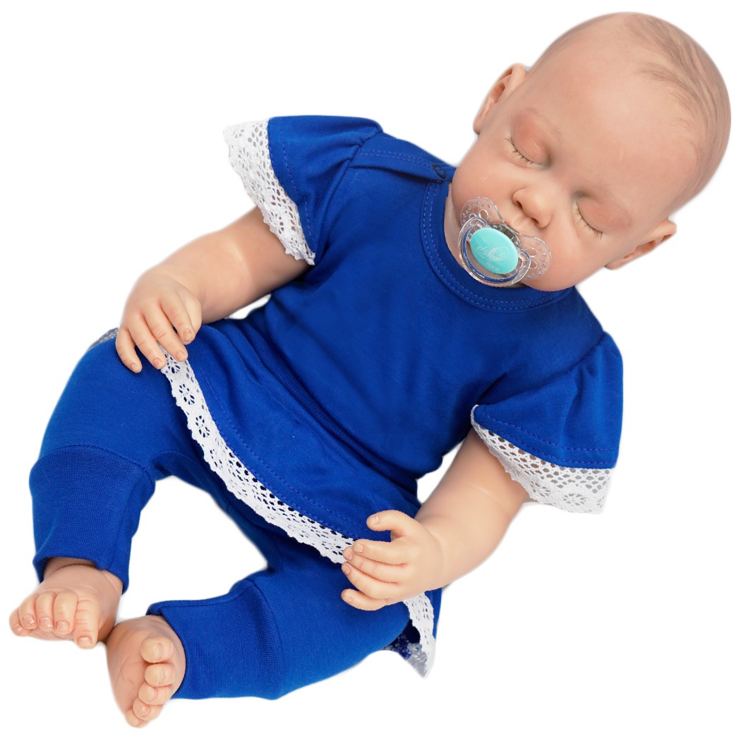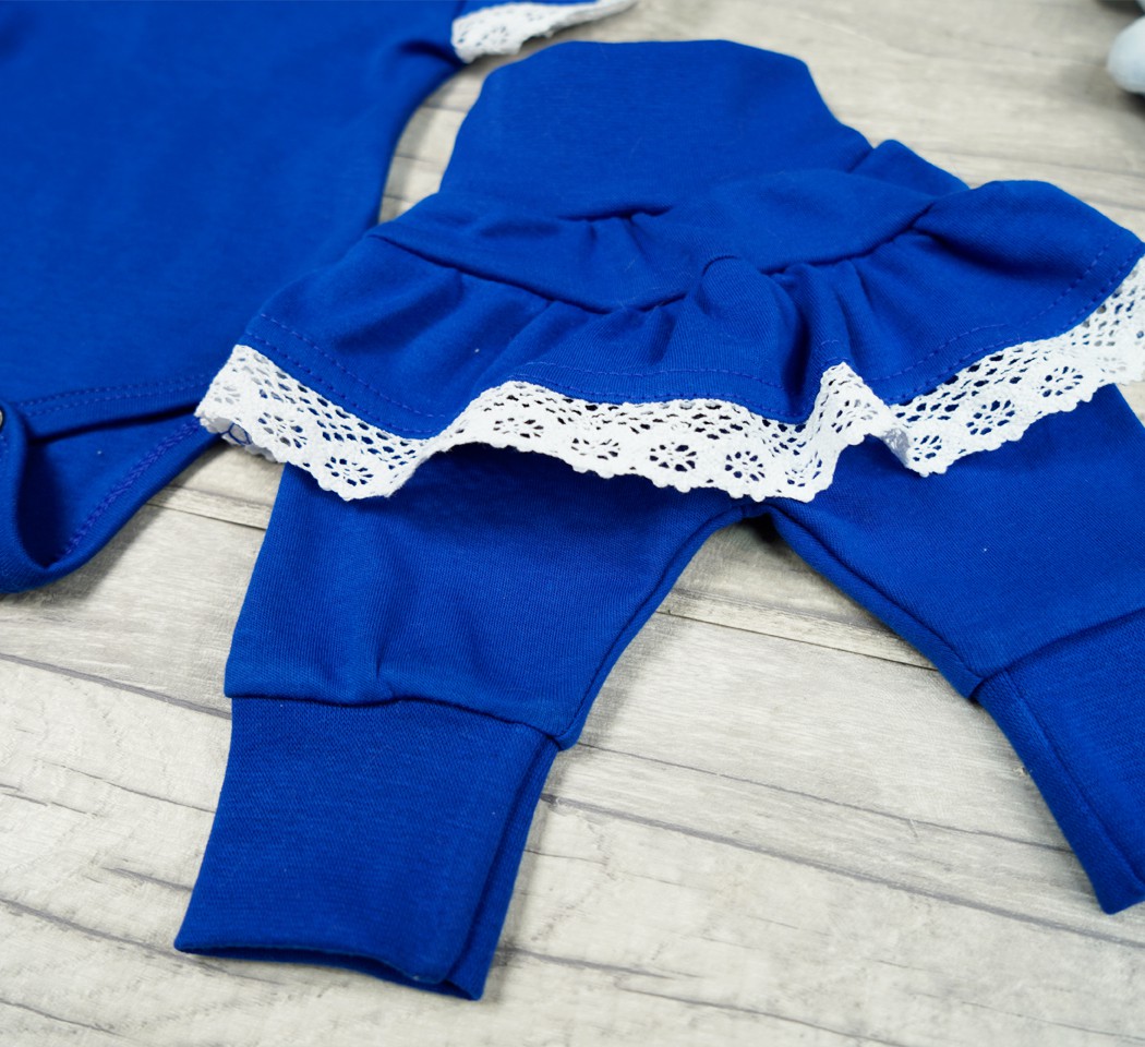 Chabrowy komplet 2cz body + spodnie z falbanką koronką HANIA