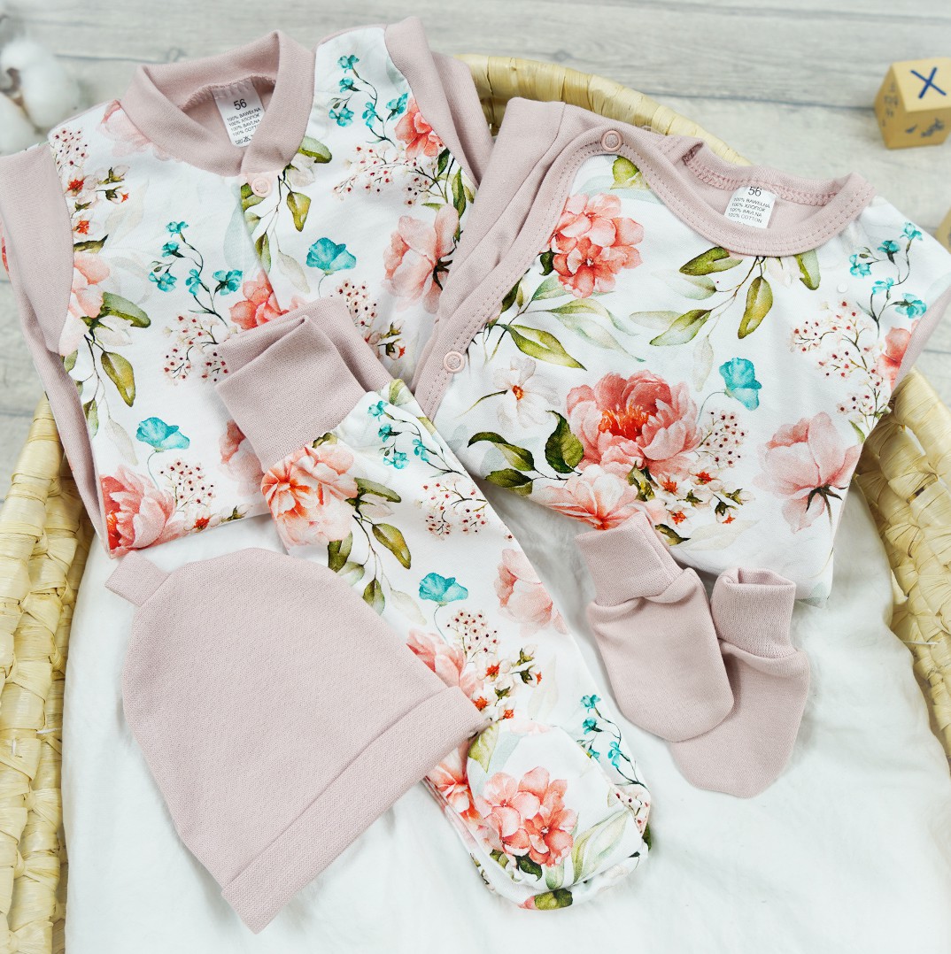 WYPRAWKA dla wcześniaka do szpitala 5 części pudrowa brzoskwiniowe kwiaty 422