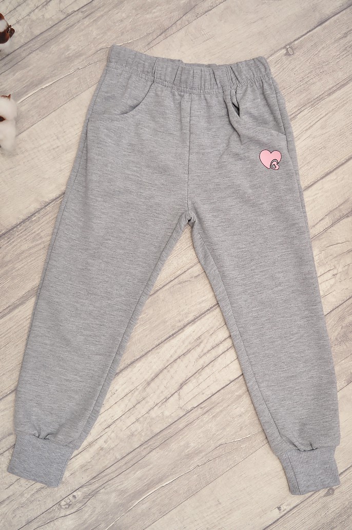 Spodenki dresowe w kolorze szarym posiadają w pasie gumkę oraz 2 wewnętrzne kieszenie. Obok jednej kieszonki znajdują się różowe serduszka. Nogawki wykończone ściągaczami.