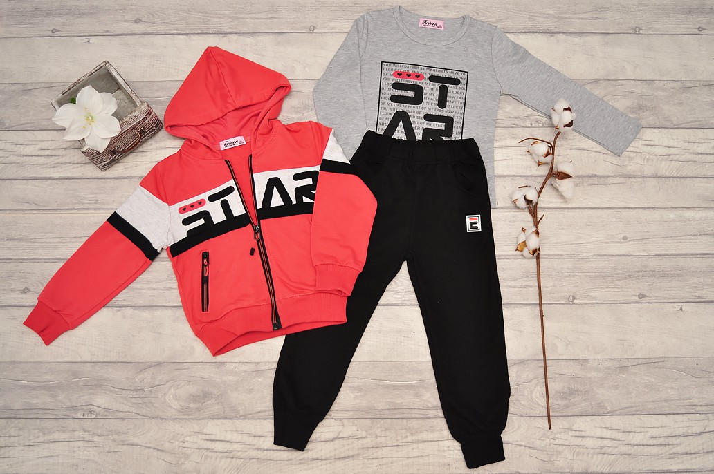 DRES dziewczęcy STAR1 malinowa bluza z kapturem, spodnie, bluzka, komplet 3cz.
