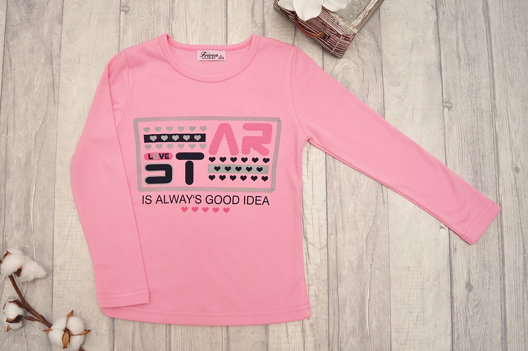 * różowa bluzeczka z nadrukiem, długi rękaw