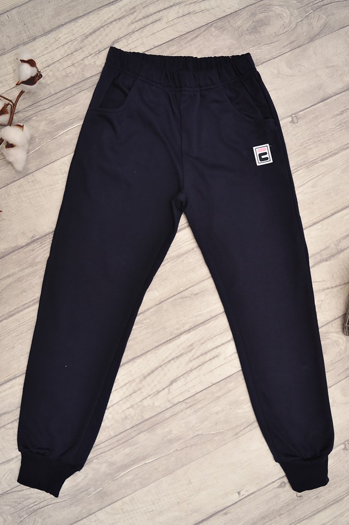 Spodenki dresowe w kolorze granatowym posiadają gumkę w pasie i dwie wewnętrzne kieszenie. Obok jednej kieszonki ozdobny emblemat. Nogawki wykończone ściągaczami.