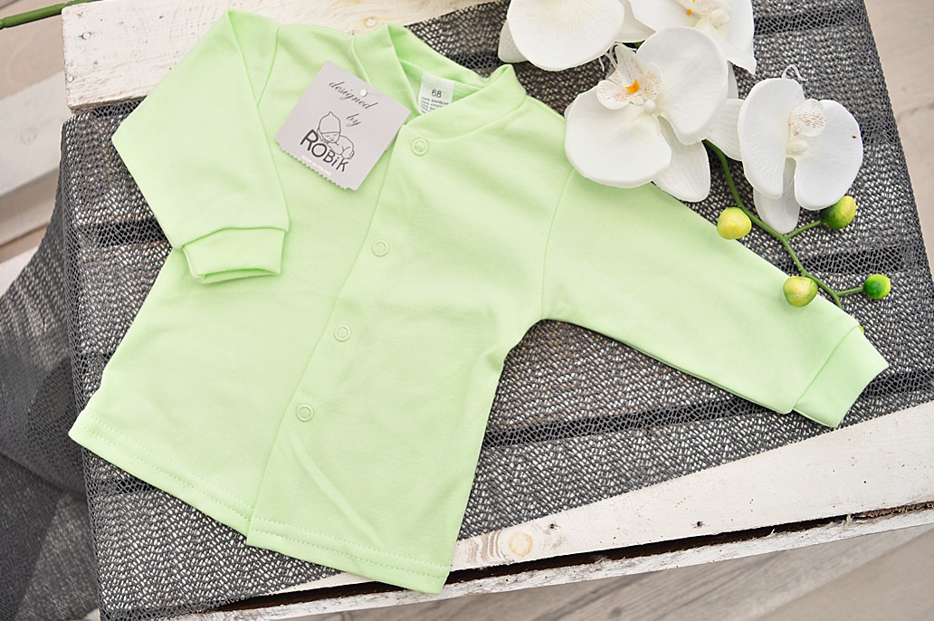Kaftanik dla wcześniaka w kolorze pistacjowej zieleni.