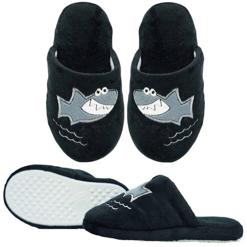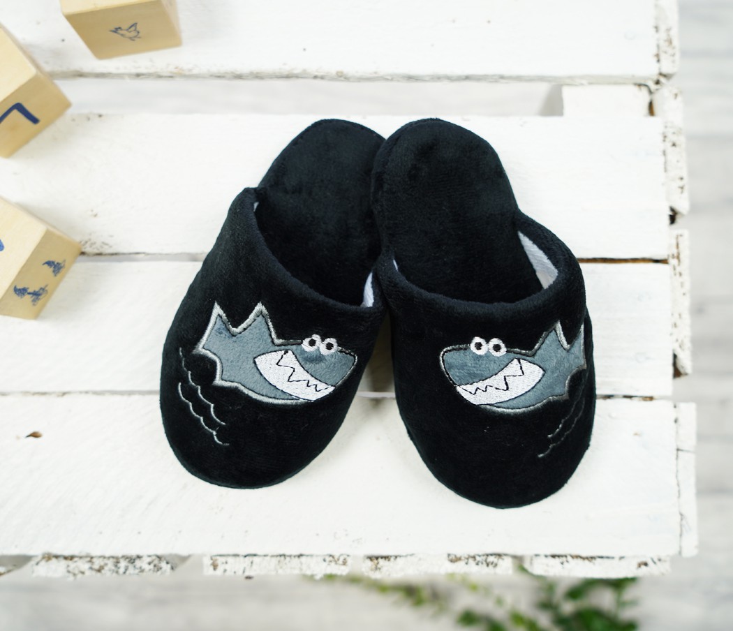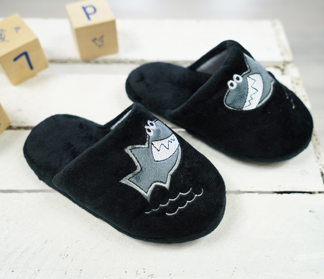 Czarne kapcie dziecięce z rekinem