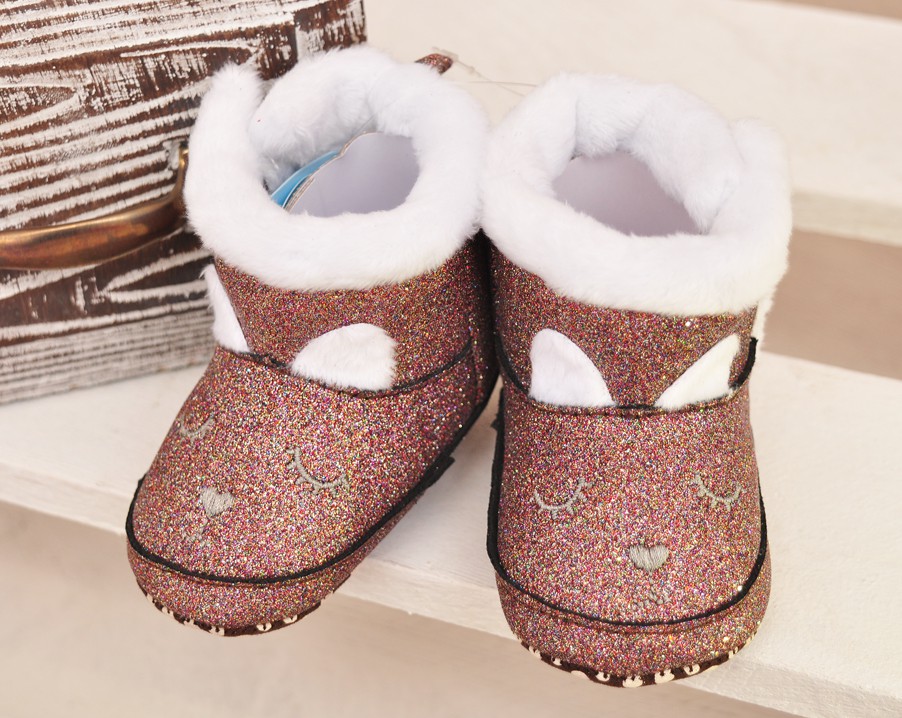 Miedziane kozaczki na futerku niechodki dziewczęce z brokatem Króliczek.