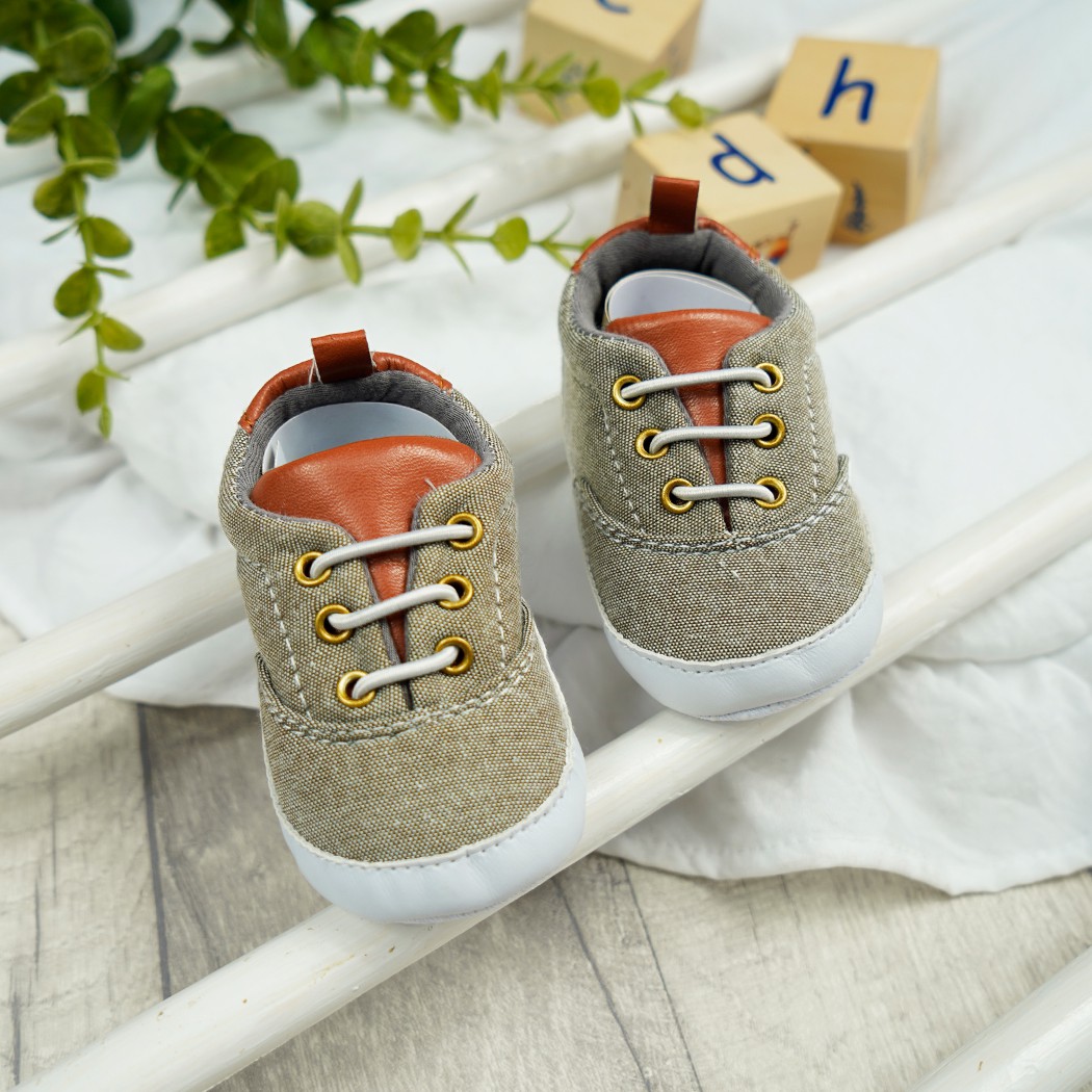 Trampki niechodki ciemno- beżowe z brązowymi elementami