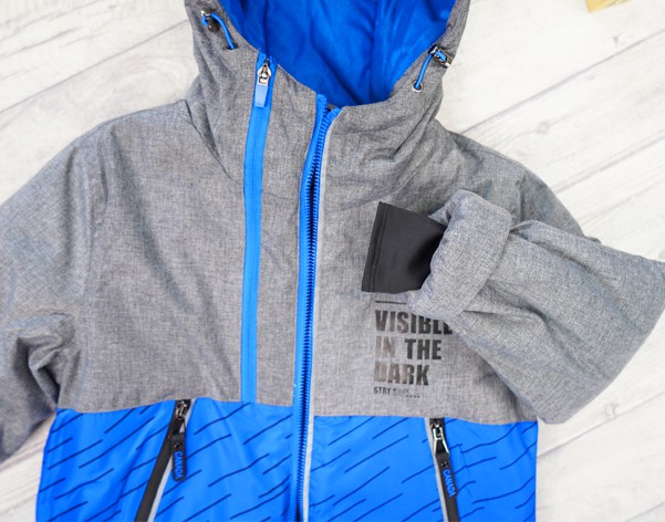 Kurtka posiada wodoodporną membranę, dzięki czemu deszcz i śnieg nie dostaną się do jej wnętrza nawet podczas intensywnych zabaw na śniegu.