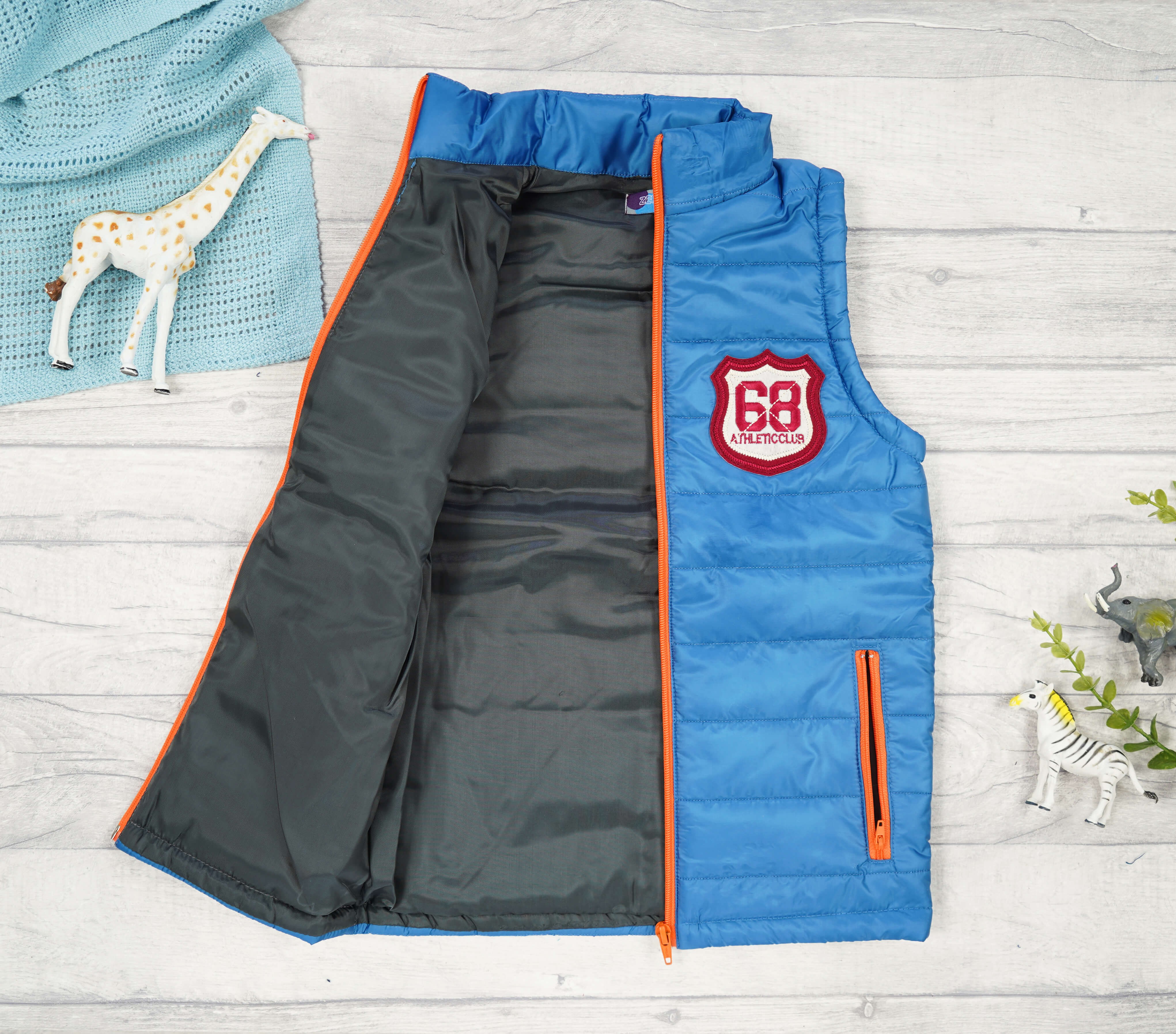 Elementem ozdobnym tego chłopięcego bezrękawnika jest aplikacja na piersi jak i z tyłu na dole z napisem: 68 Athletic Club. Jego krój umożliwia całkowite rozpięcie, a ubranko jest funkcjonalne i wygodne.