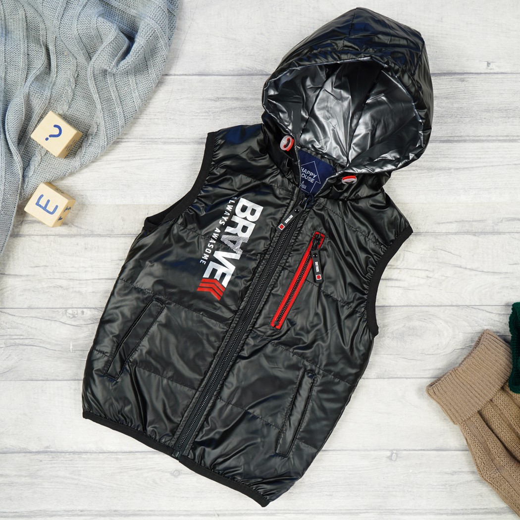 Czarna KAMIZELKA BRAVE metalik bezrękawnik chłopięcy