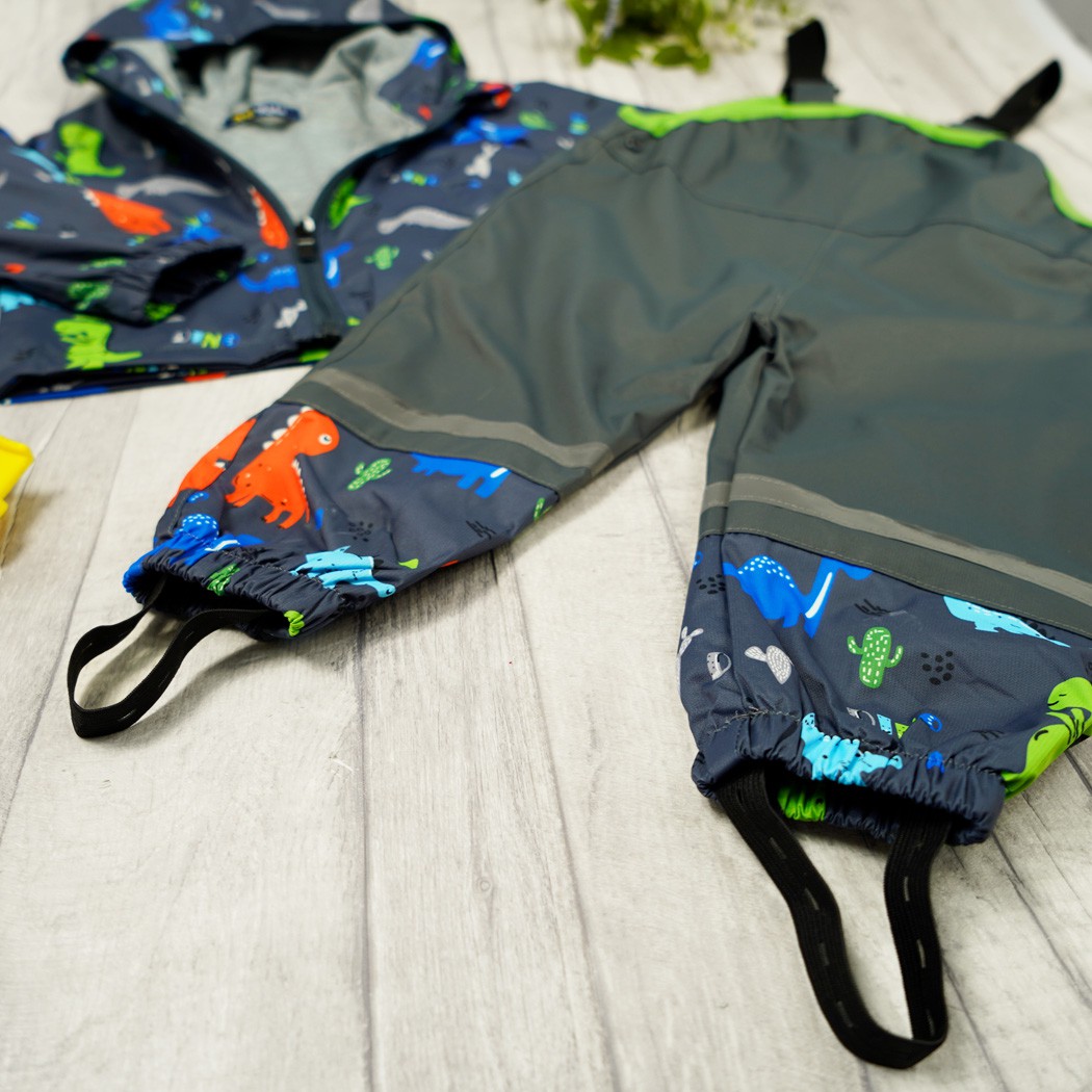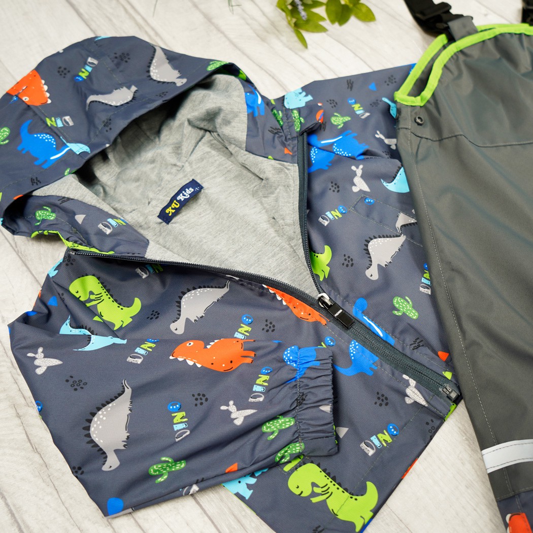 KOMBINEZON przeciwdeszczowy dwuczęściowy GRAFIT DINO kurtka + spodnie wiosna/jesień