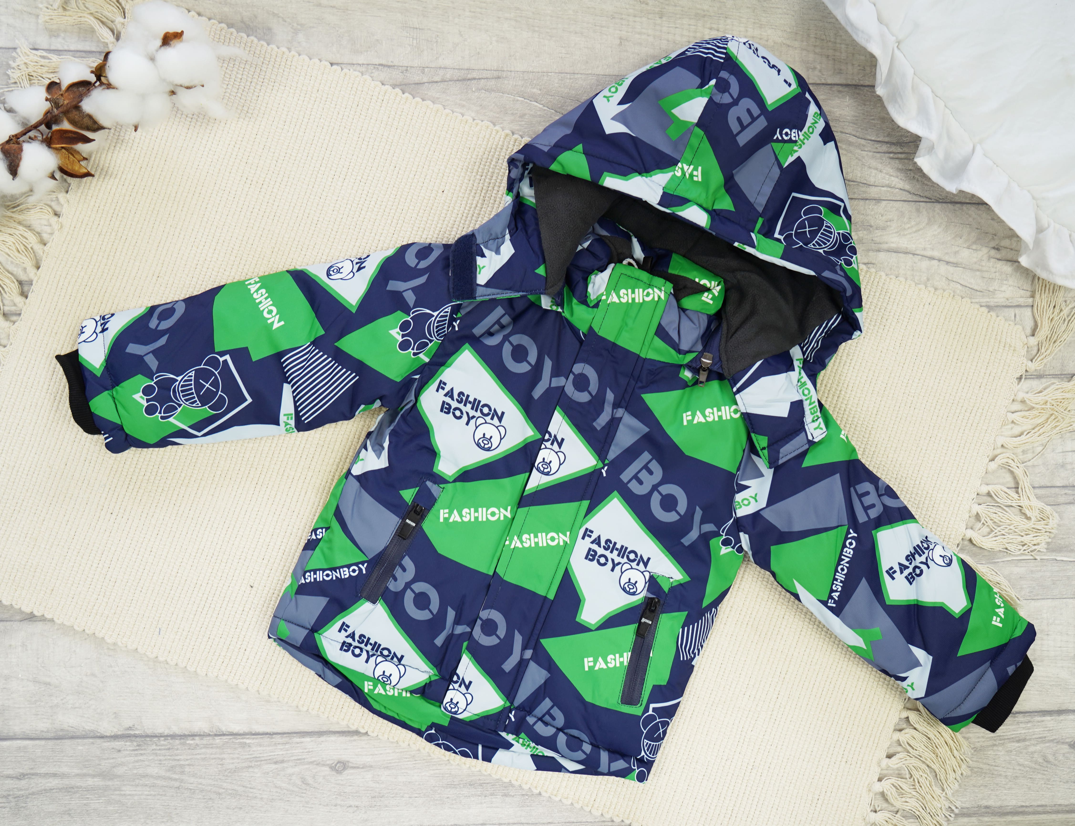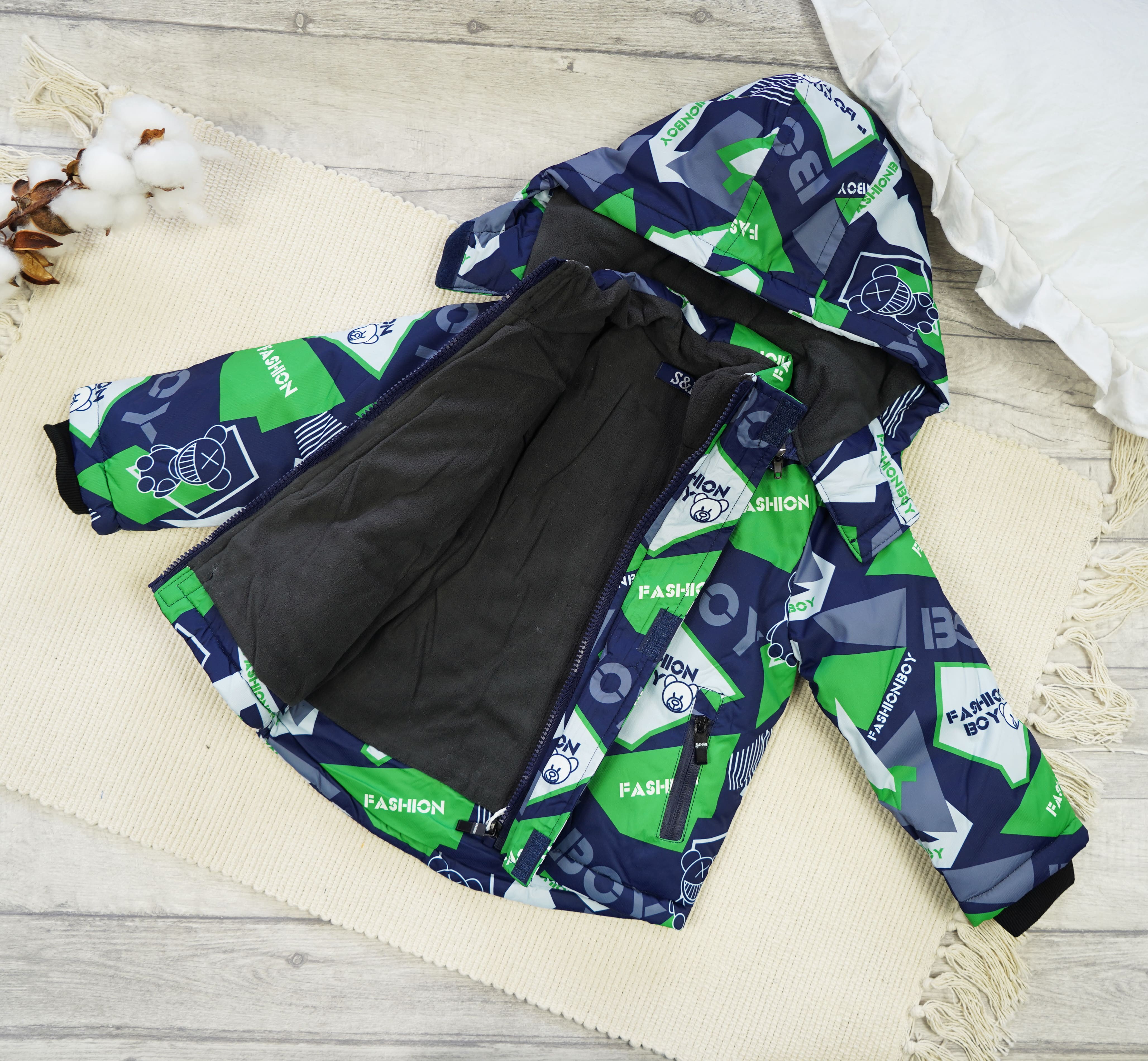 Dostępna w zestawie kurtka zimowa wykonana z warstwy nieprzemakalnej od strony zewnętrznej oraz ocieplona od wewnątrz miękkim polarem. Posiada ona stójkę osłaniającą szyję dziecka oraz odsuwany kaptur wyposażony w zapięcie na rzep. Kaptur kurtki również został ocieplony polarem. Kurtka posiada także dwie wbudowane kieszenie na zamek. Rękawy wykończone doszytym wewnątrz ściągaczem.