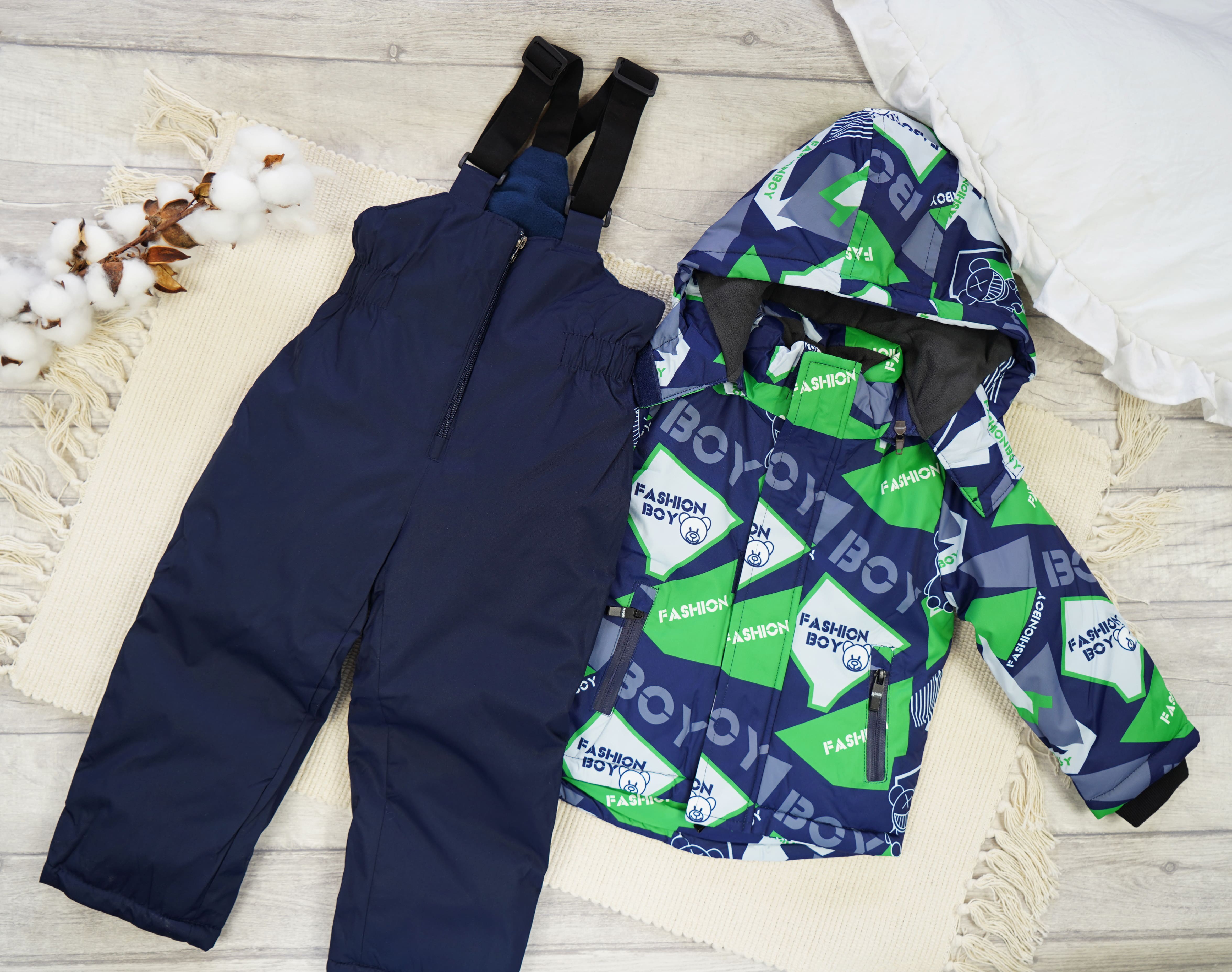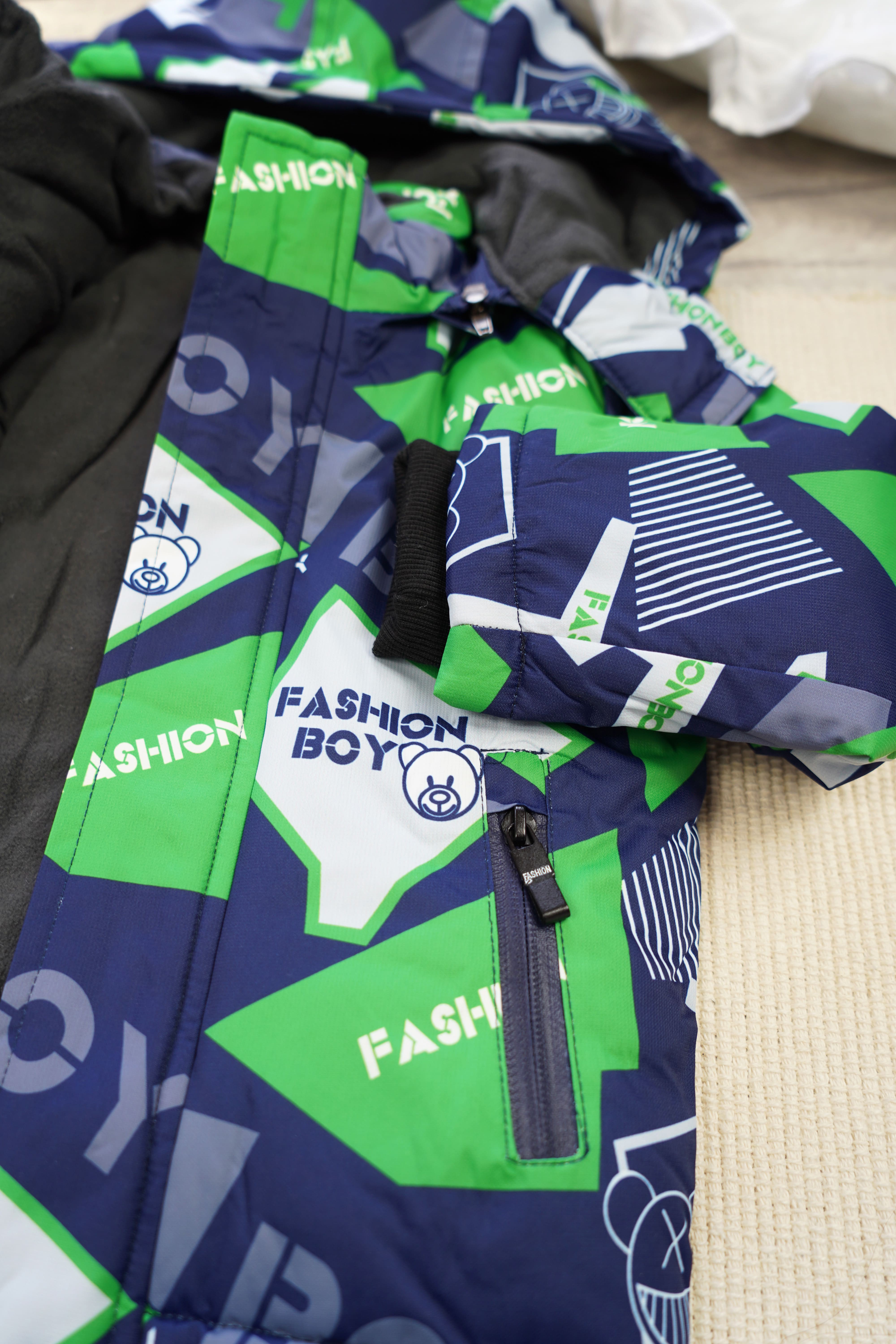 ZIMOWY KOMBINEZON dwuczęściowy granatowy z zielonym fashion boy kurtka + spodnie