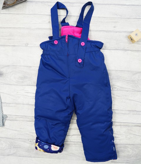 W skład kompletu wchodzą również nieprzemakalne spodnie typu narciarskiego. Spodnie posiadają suwak z przodu, elastyczną gumkę po bokach na wysokości pasa oraz szelki zapinane na guziki.