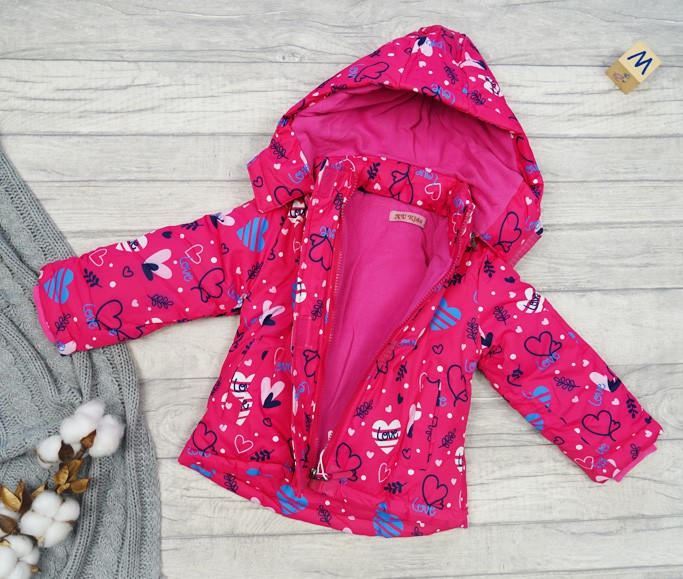Dostępna w zestawie kurtka zimowa wykonana z warstwy nieprzemakalnej od strony zewnętrznej oraz ocieplona od wewnątrz miękkim polarem. Posiada ona stójkę osłaniającą szyję dziecka oraz odsuwany kaptur wyposażony w zapięcie na rzep. Kaptur kurtki również został ocieplony polarem. Dwie wbudowane kieszenie oraz zasuwana nieprzemakalnym zamkiem kieszeń na ramieniu. Rękawy wykończone doszytym wewnątrz ściągaczem.