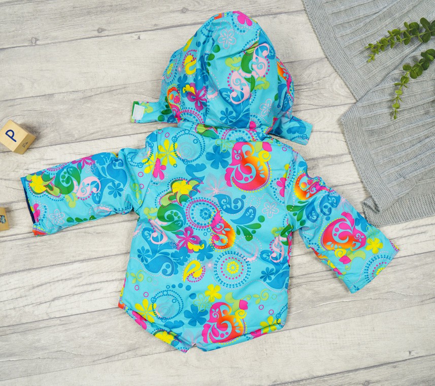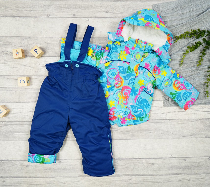 Pomiędzy warstwą wewnętrzną i zewnętrzną tego zestawu znajduje się dodatkowa ocieplina, dzięki czemu zimowy kombinezon dwuczęściowy błękit kwiaty idealne sprawdzi się w mroźne dni, na narty lub inne zabawy dziecka na śniegu.