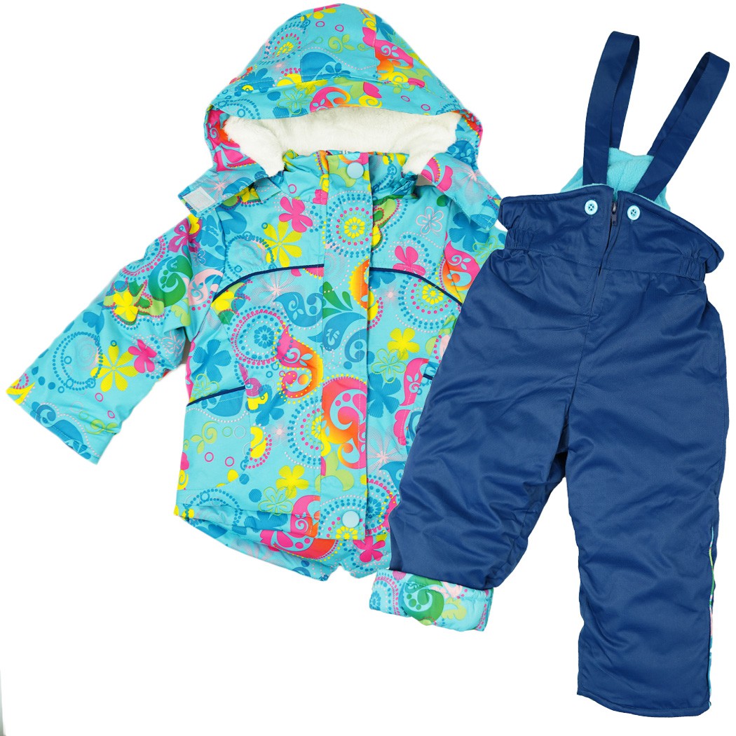 Zimowy kombinezon dwuczęściowy, dziewczęcy: kurtka i spodnie w błękitne kwiaty