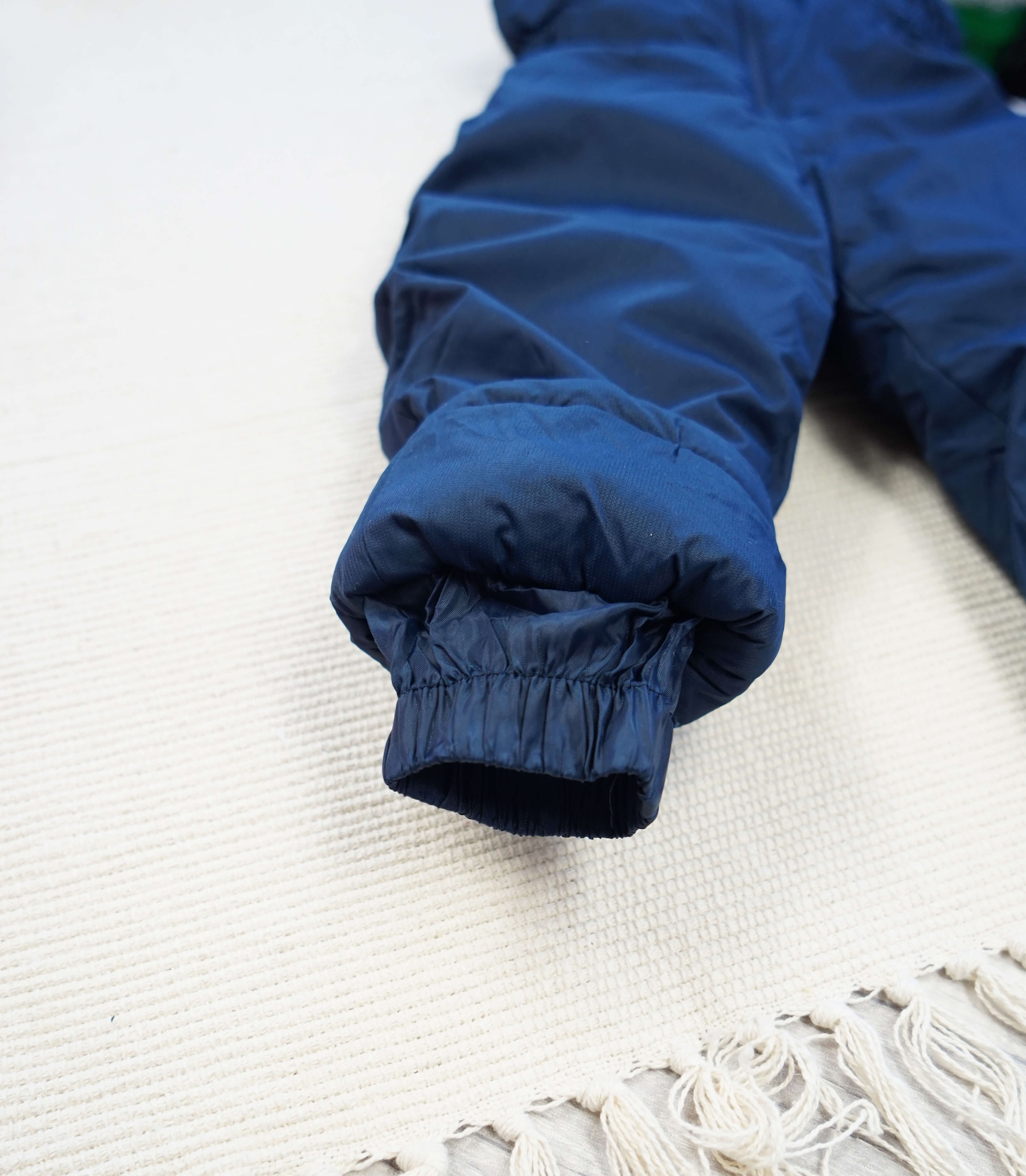 Pomiędzy warstwą wewnętrzną i zewnętrzną tego zimowego kombinezonu znajduje się dodatkowa ocieplina, dzięki czemu idealne sprawdzi się on w mroźne dni, na narty lub inne zabawy dziecka na śniegu. A na dłonie obowiązkowo rękawiczki nieprzemakalne.