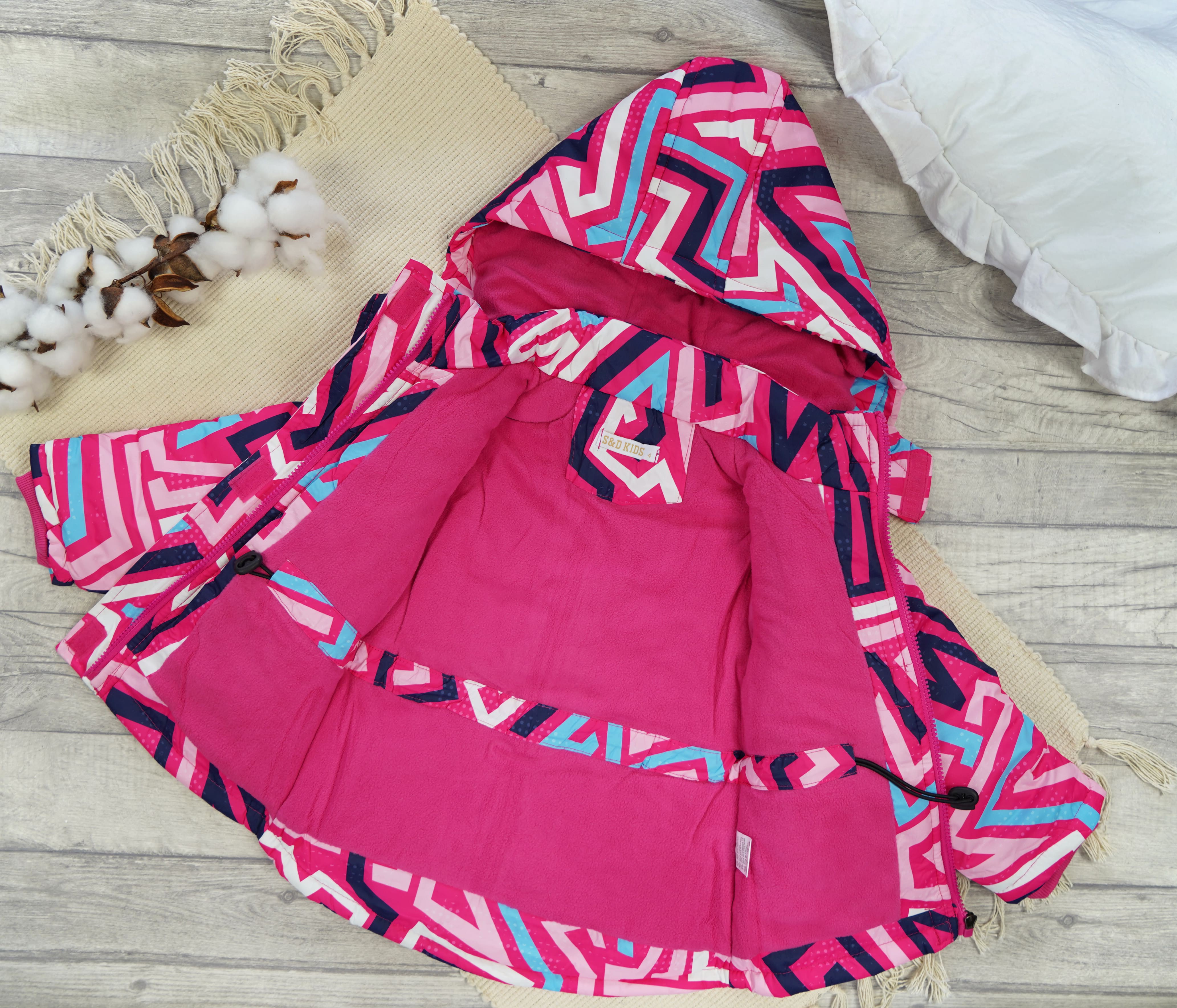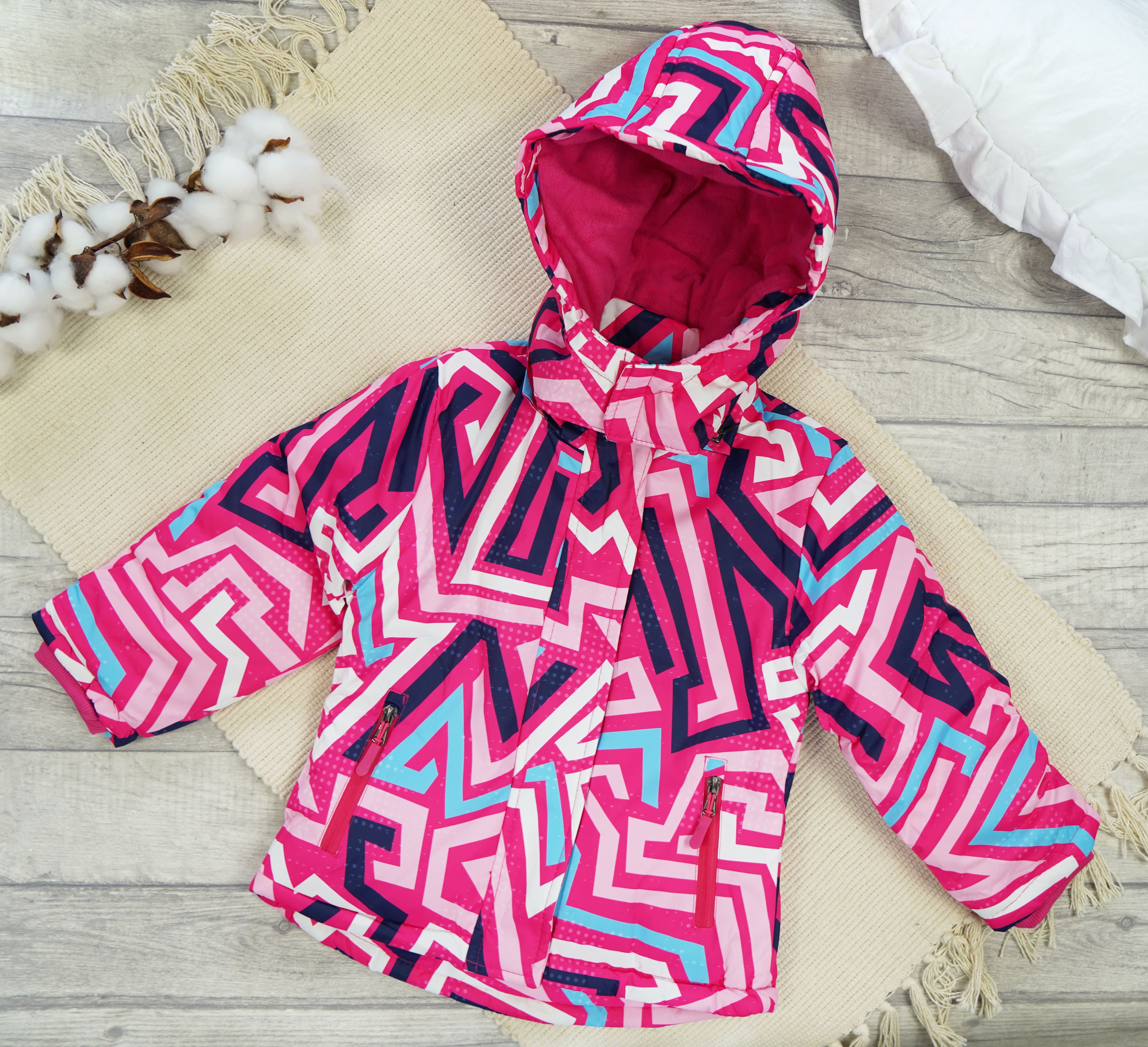 Dostępna w zestawie kurtka zimowa wykonana z warstwy nieprzemakalnej od strony zewnętrznej oraz ocieplona od wewnątrz miękkim polarem. Posiada ona stójkę osłaniającą szyję dziecka oraz odsuwany kaptur wyposażony w zapięcie na rzep. Kaptur kurtki również został ocieplony polarem. Kurtka posiada dwie wbudowane kieszenie na zamek a także regulację w talii. Rękawy wykończone doszytym wewnątrz ściągaczem.