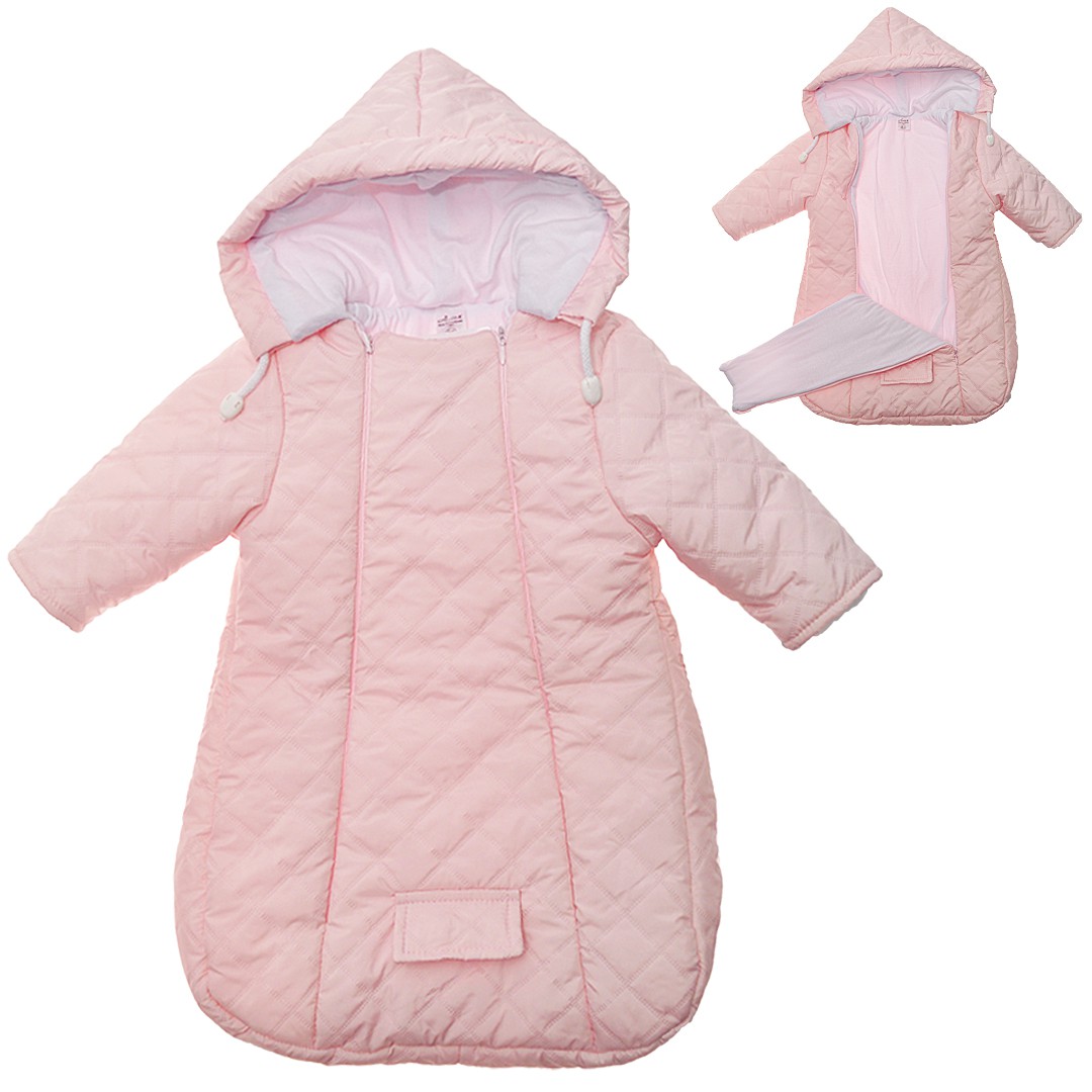 Śpiworek idealne sprawdzi się w zimne dni. Kombinezon dziecięcy zapinany jest na dwa suwaki, dzięki temu spokojnie i bez niepotrzebnego przeciskania ubierzesz swojego malucha. Warstwa wewnętrzna kombinezonu niemowlęcego wykonana jest w 100% z bawełny, a warstwa zewnętrzna jest nieprzemakalna i odpowiednia dla najbardziej niekorzystnych warunków atmosferycznych. Niezwykle miękki i wygodny w zakładaniu kombinezon niemowlęcy jest bardzo wygodny do fotelików samochodowych, posiada specjalne wycięcie umożliwiające przełożenie pasów fotelika.