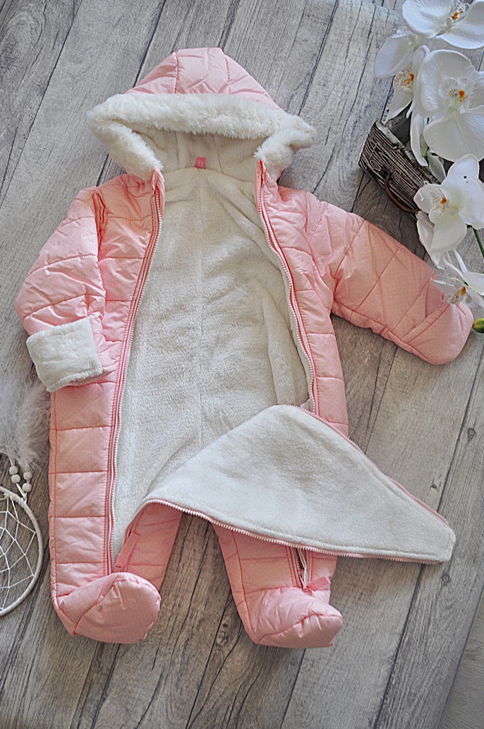 Pikowany kombinezon dla niemowlaka z futerkową warstwą wewnętrzną.