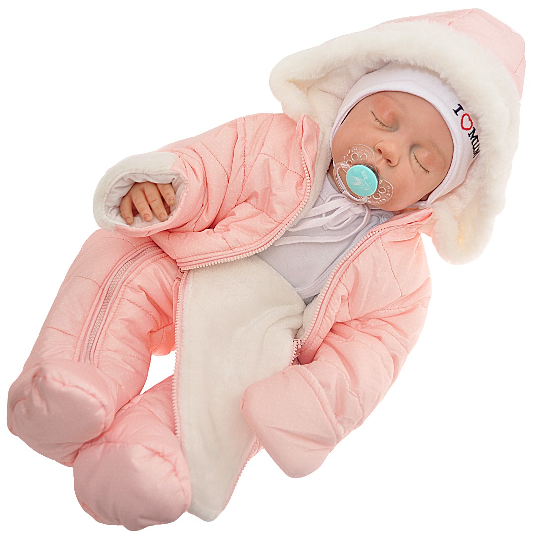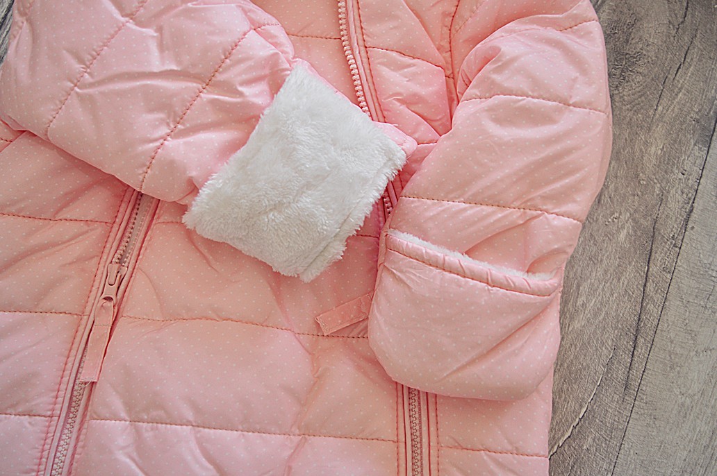 Różowy kombinezon dziecięcy zapinany przez całą długość na 2 suwaki, dzięki temu spokojnie i bez niepotrzebnego przeciskania ubierzesz swojego malucha. Kombinezon posiada ocieplany kaptur oraz specjalne zakładki na rękawach, które po odwinięciu służą jak rękawiczki chroniąc dłonie maluszka. Warstwa wewnętrzna kombinezonu niemowlęcego wykonana jest z mięciutkiego i przyjemnego w dotyku misia. Warstwa zewnętrzna chroni od wiatru.
