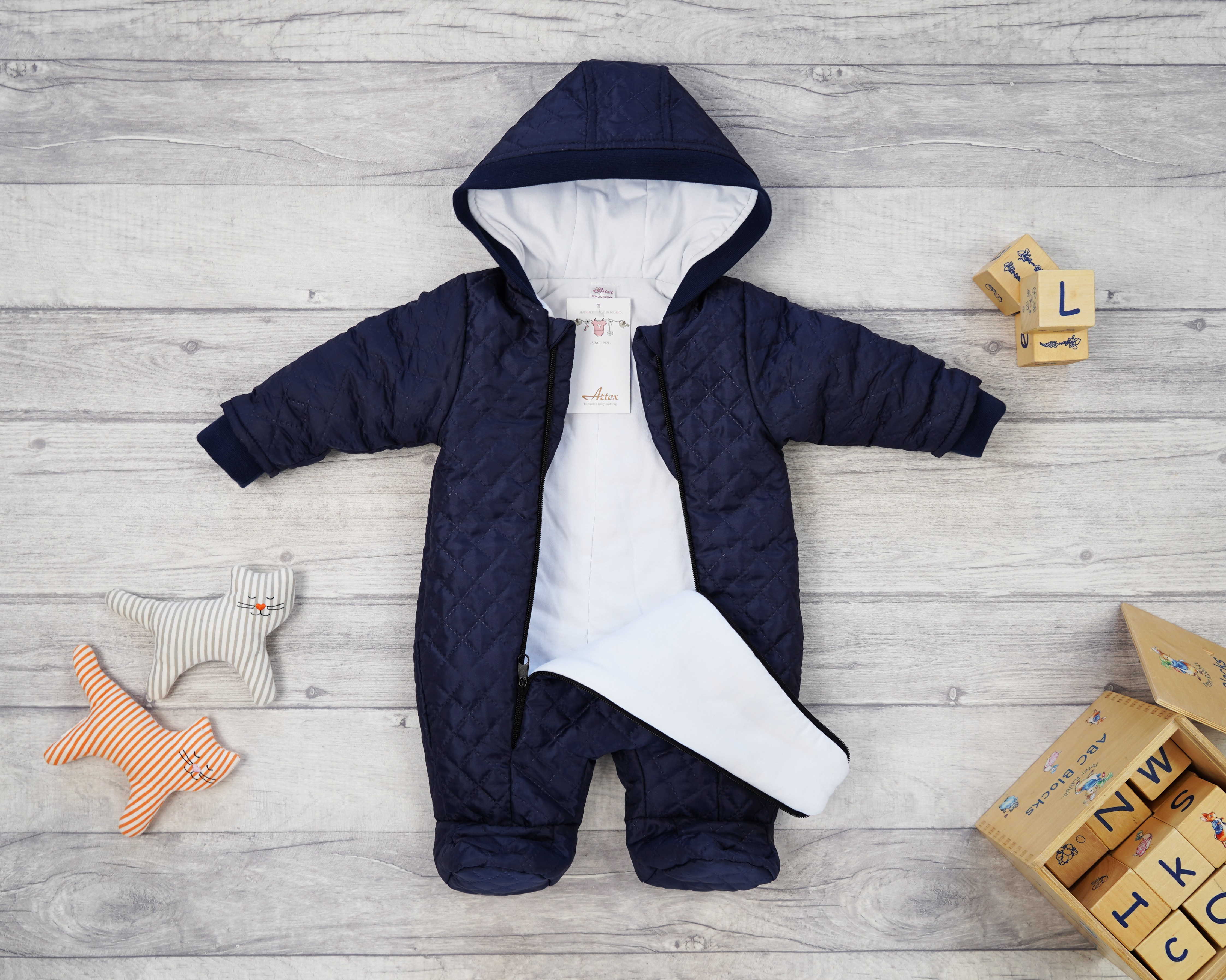 Pikowany kombinezon dla niemowlaka ze stópkami.