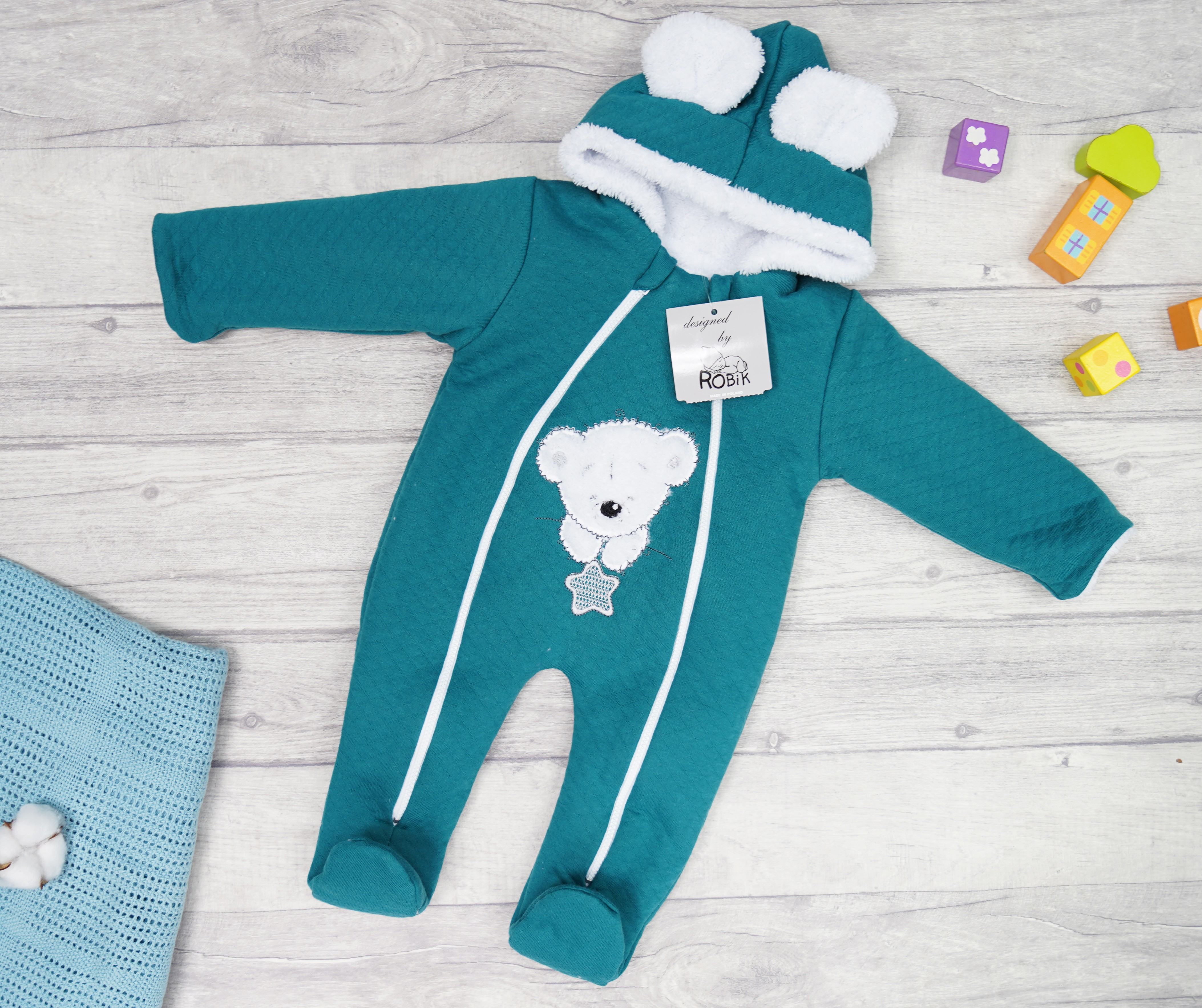 Butelkowy KOMBINEZON na futerku pikowany z misiem