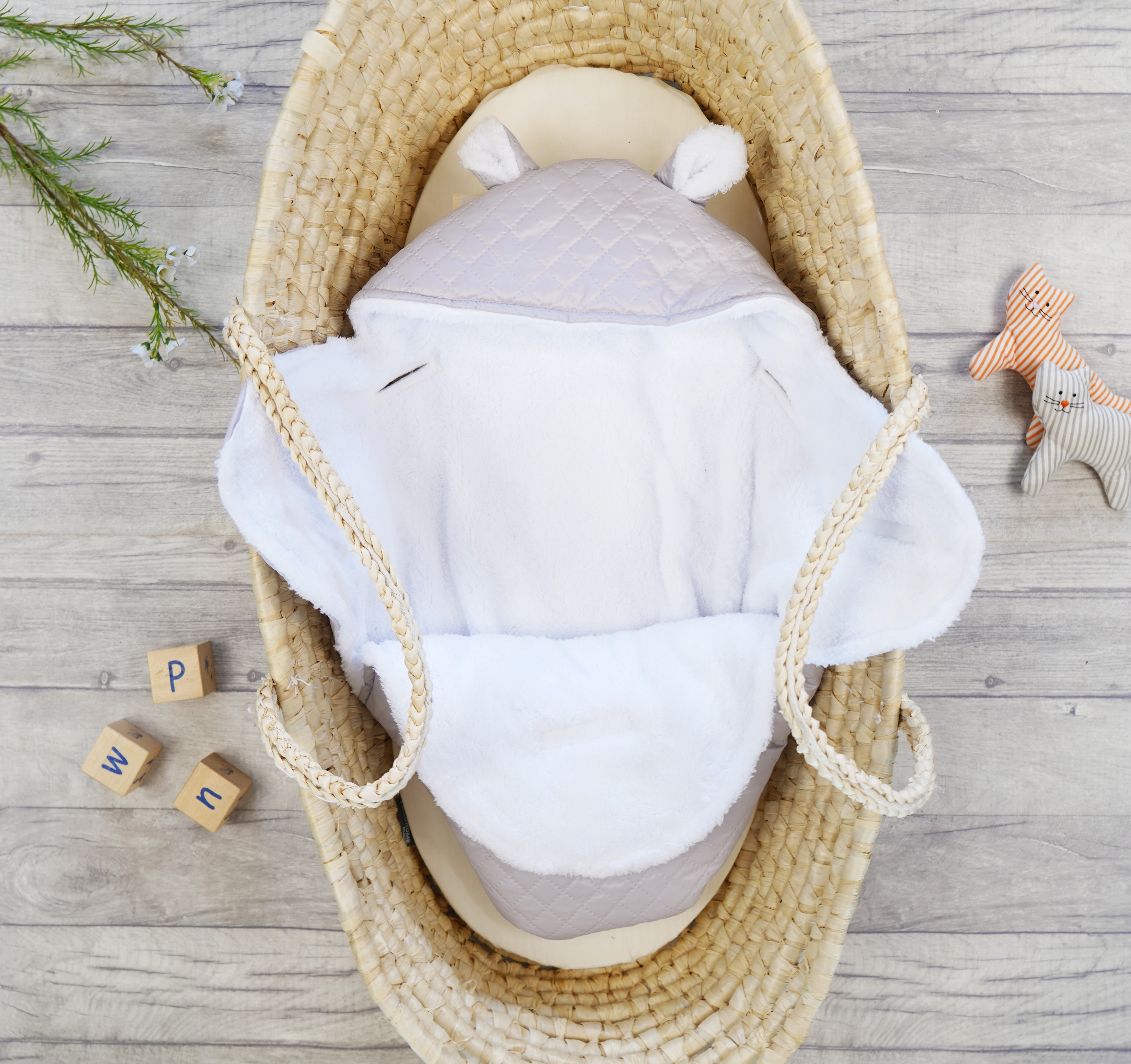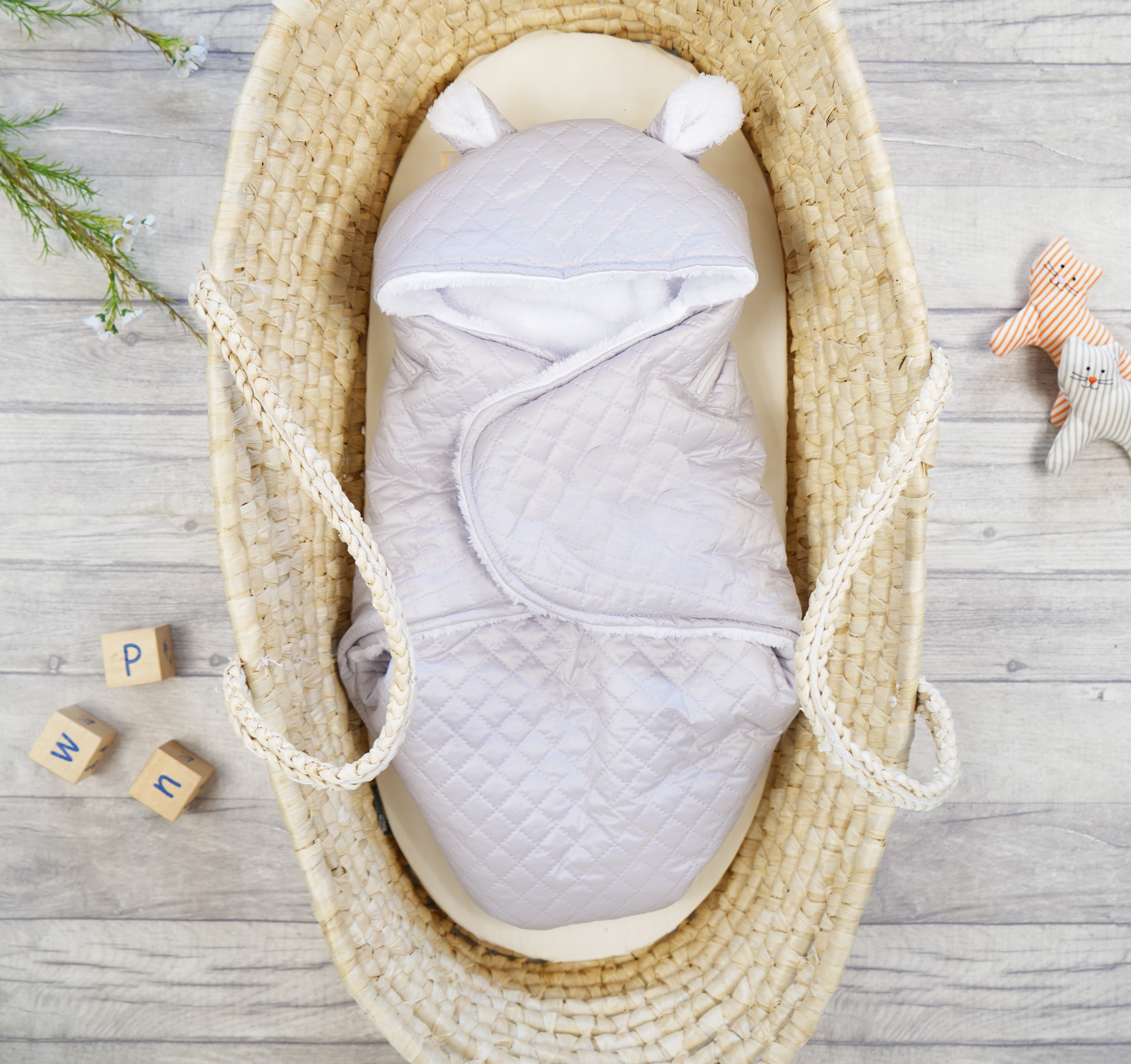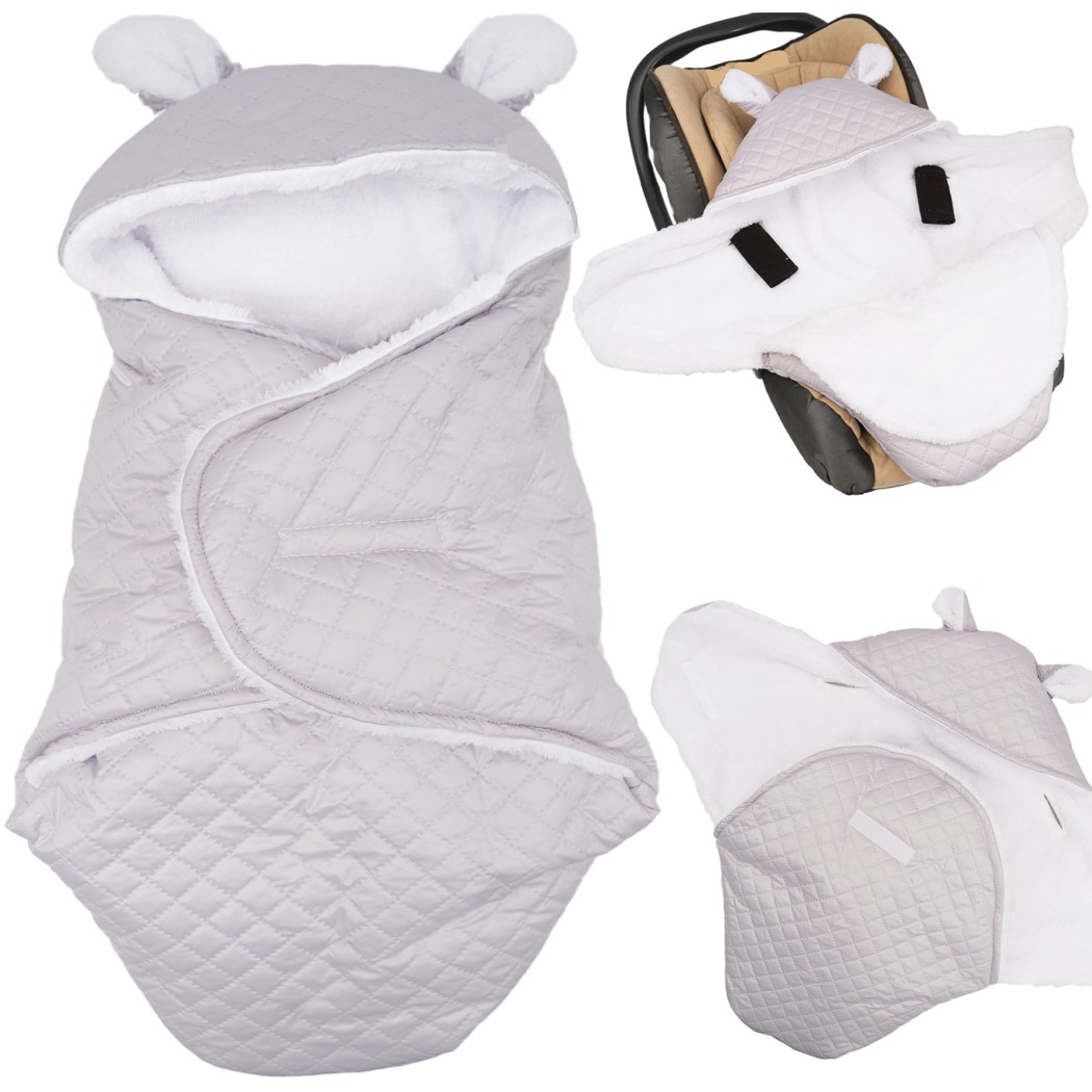 Otulacz idealne sprawdzi się w zimne dni. Śpiworek dziecięcy zapinany jest na 3 rzepy, dzięki temu spokojnie i bez niepotrzebnego przeciskania ubierzesz swojego malucha. Warstwa wewnętrzna w kolorze białym wykonana jest w 100% z bawełny, a warstwa zewnętrzna jest nieprzemakalna i odpowiednia dla najbardziej niekorzystnych warunków atmosferycznych. Niezwykle miękki i wygodny w zakładaniu otulacz niemowlęcy jest bardzo wygodny do fotelików samochodowych, posiada specjalne wycięcie umożliwiające przełożenie pasów fotelika oraz kaptur z ozdobnymi uszkami chroniący przed wiatrem i deszczem.