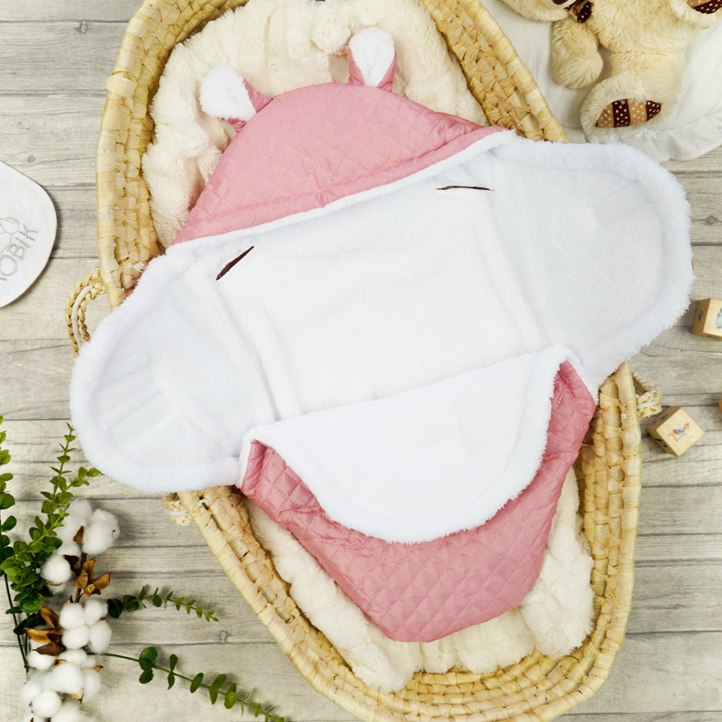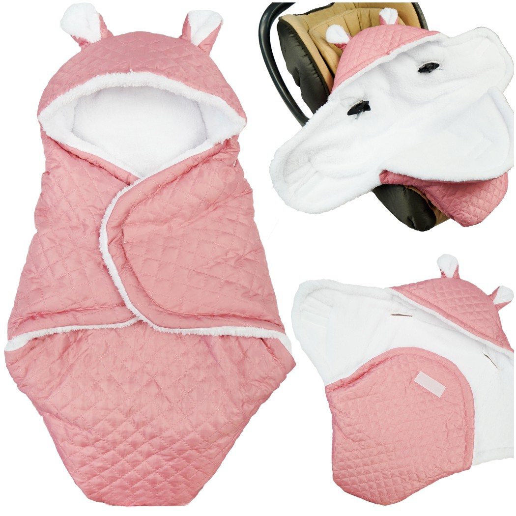 Otulacz idealne sprawdzi się w zimne dni. Śpiworek dziecięcy zapinany jest na 3 rzepy, dzięki temu spokojnie i bez niepotrzebnego przeciskania ubierzesz swojego malucha. Warstwa wewnętrzna w kolorze białym wykonana jest w 100% z bawełny, a warstwa zewnętrzna jest nieprzemakalna i odpowiednia dla najbardziej niekorzystnych warunków atmosferycznych. Niezwykle miękki i wygodny w zakładaniu otulacz niemowlęcy jest bardzo wygodny do fotelików samochodowych, posiada specjalne wycięcie umożliwiające przełożenie pasów fotelika oraz kaptur z ozdobnymi uszkami chroniący przed wiatrem i deszczem.