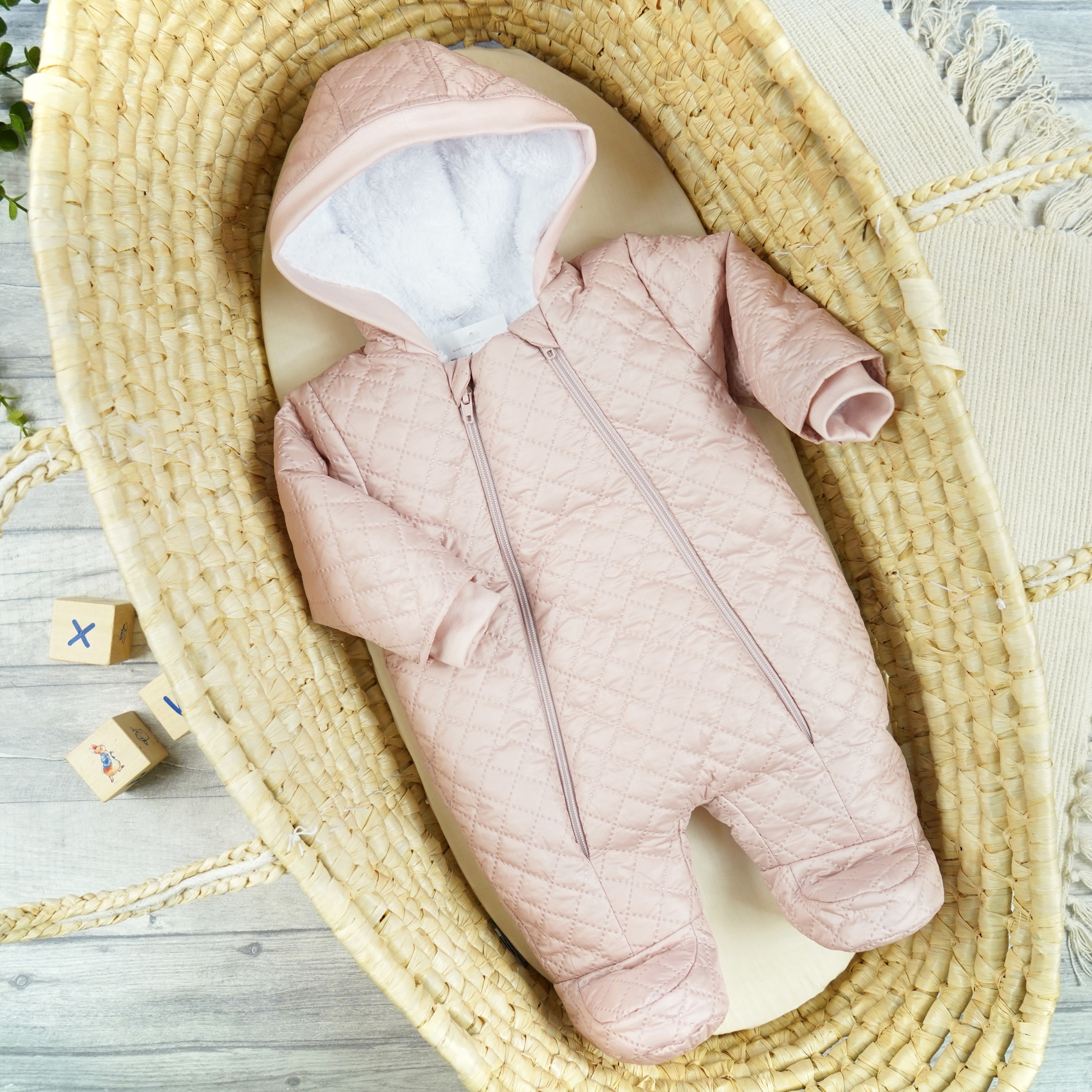 Pikowany kombinezon dla niemowlaka ze stópkami.