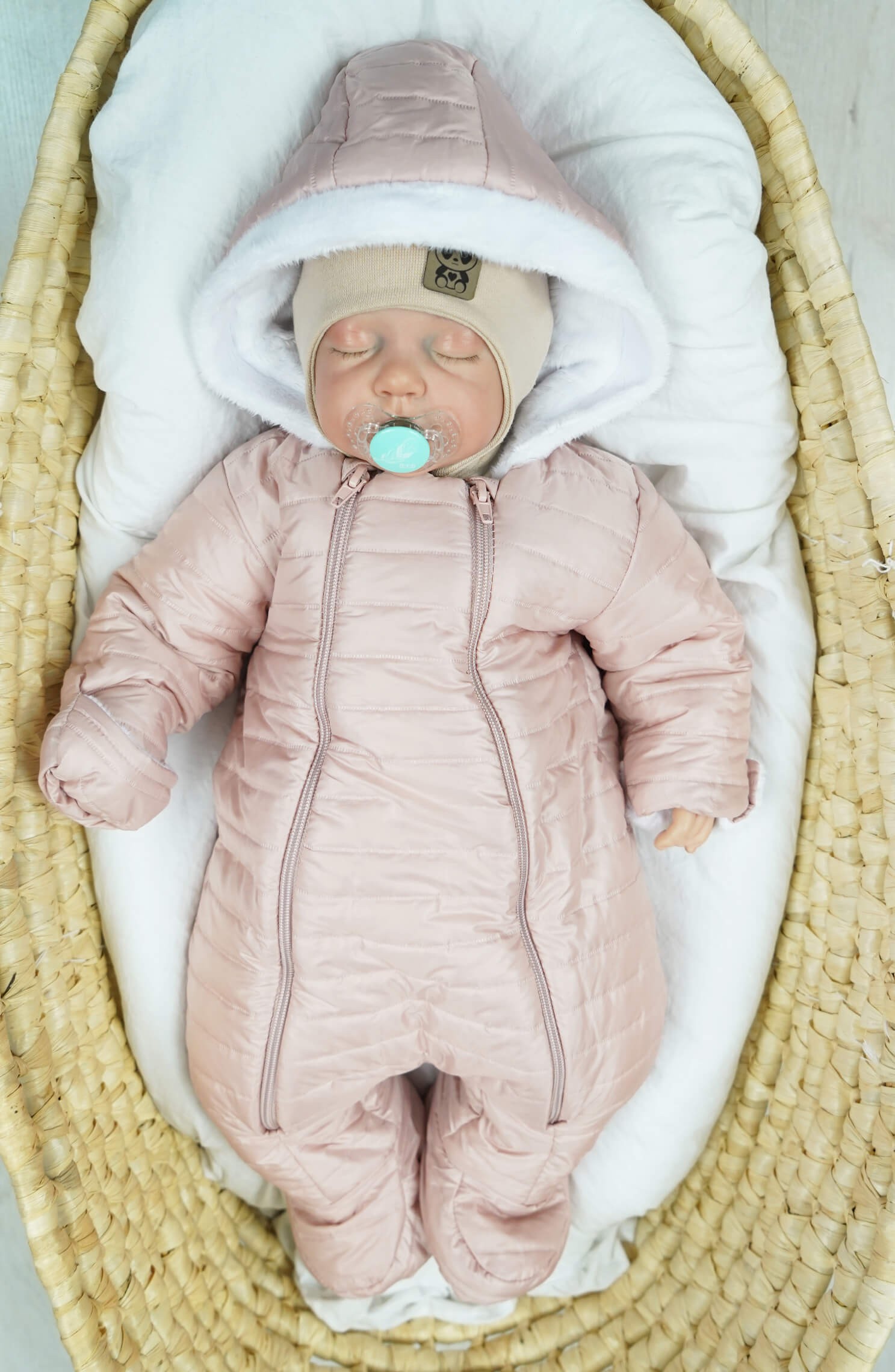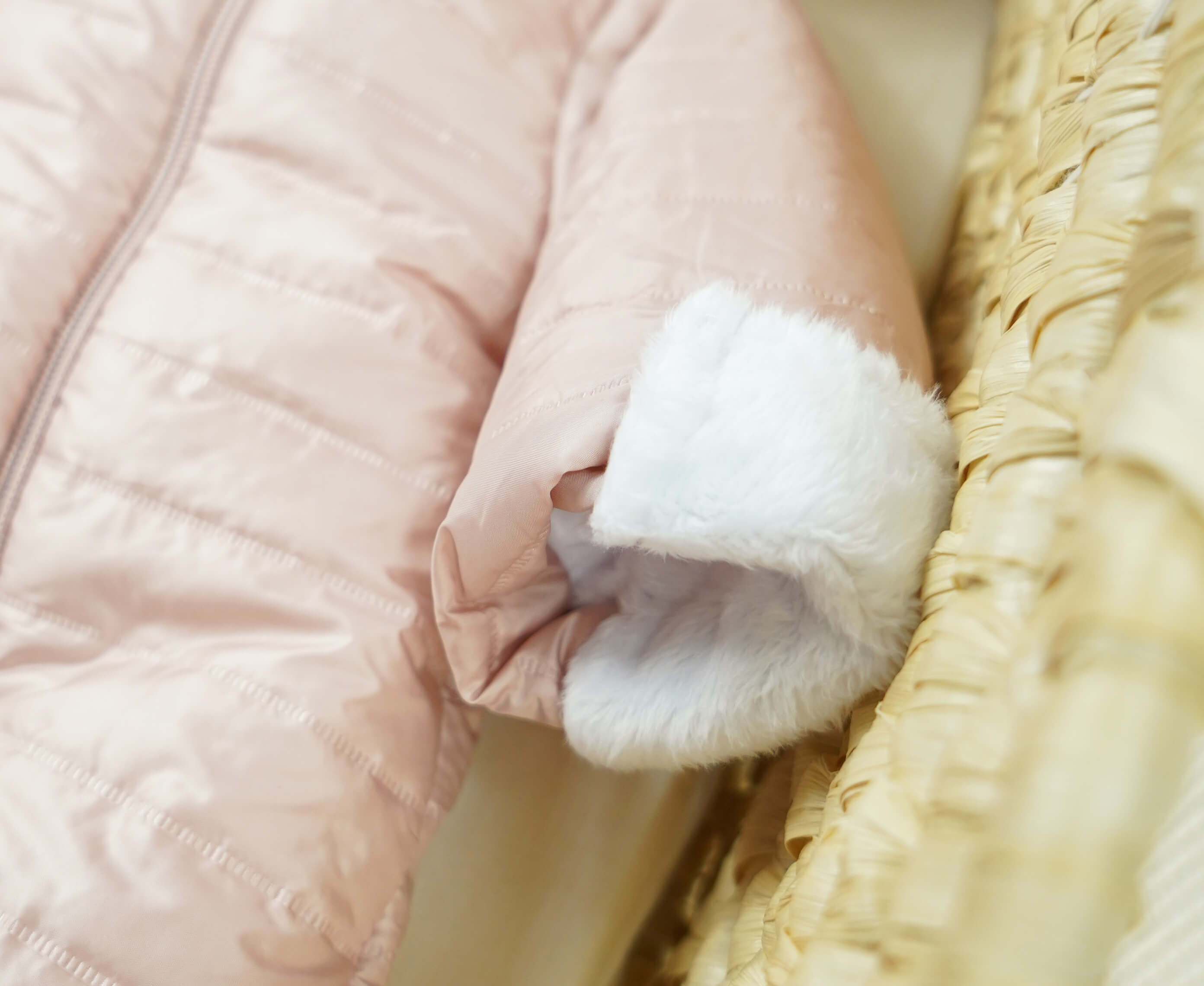 Różowy KOMBINEZON pikowany na futerku 2 suwaki osłona na rączki