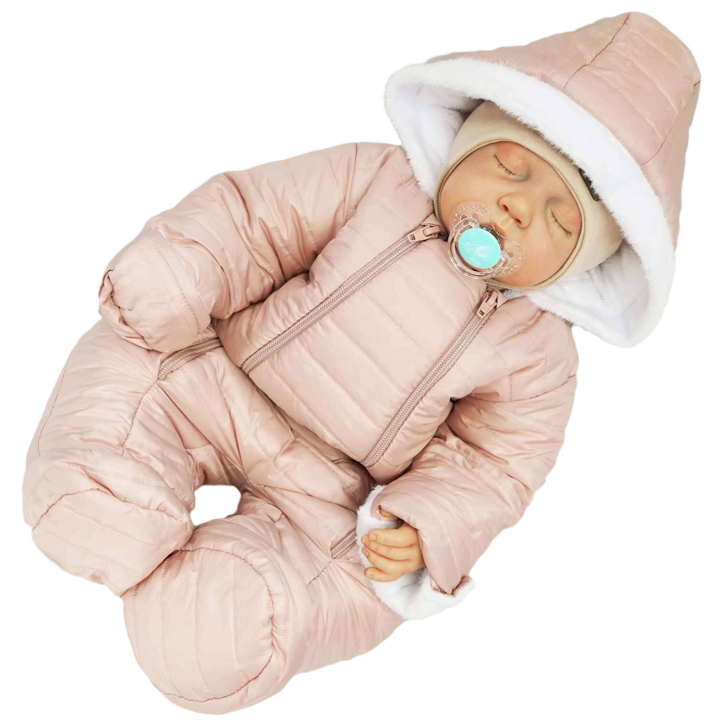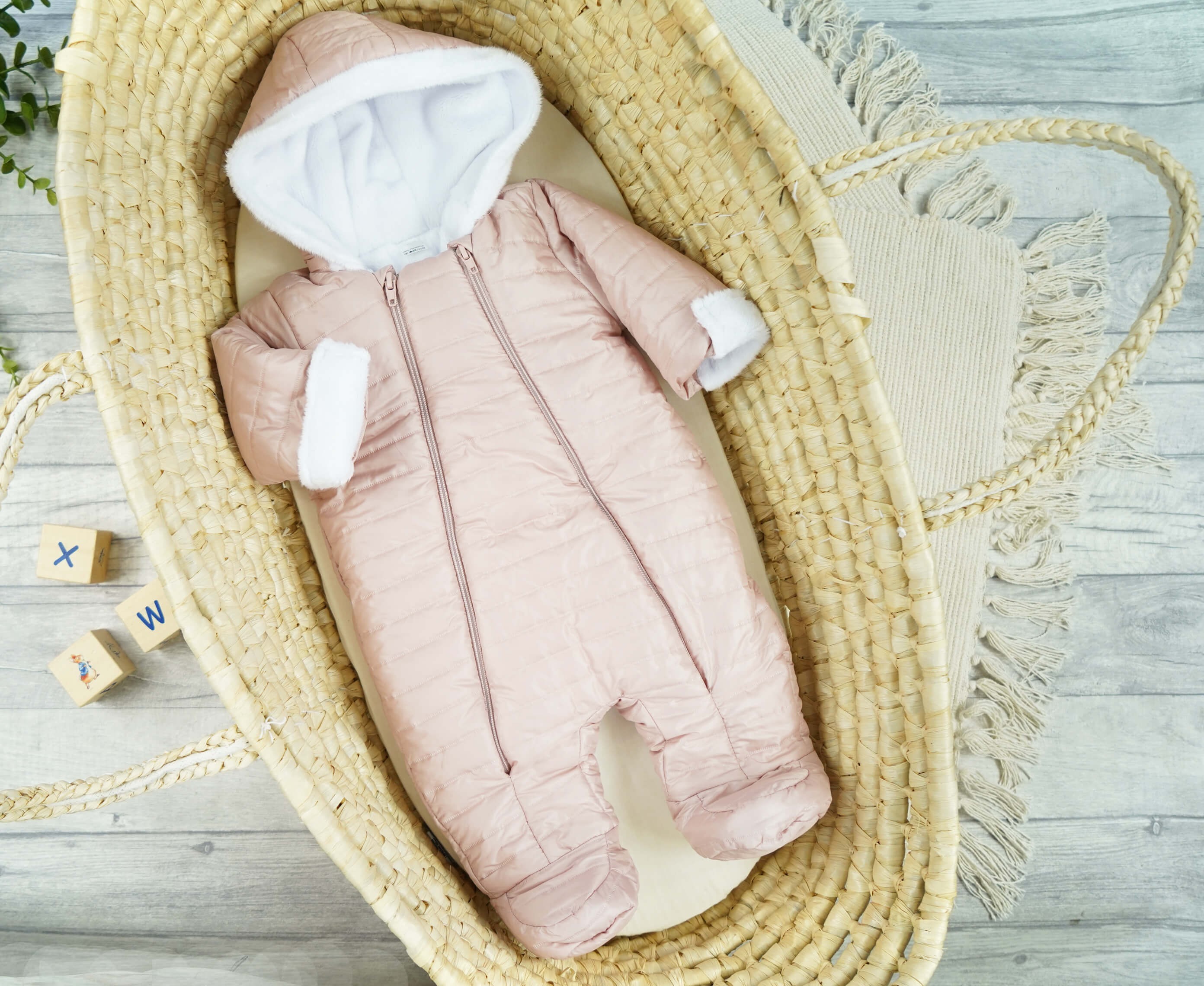 Pikowany kombinezon dla niemowlaka ze stópkami i osłonkami na dłonie.