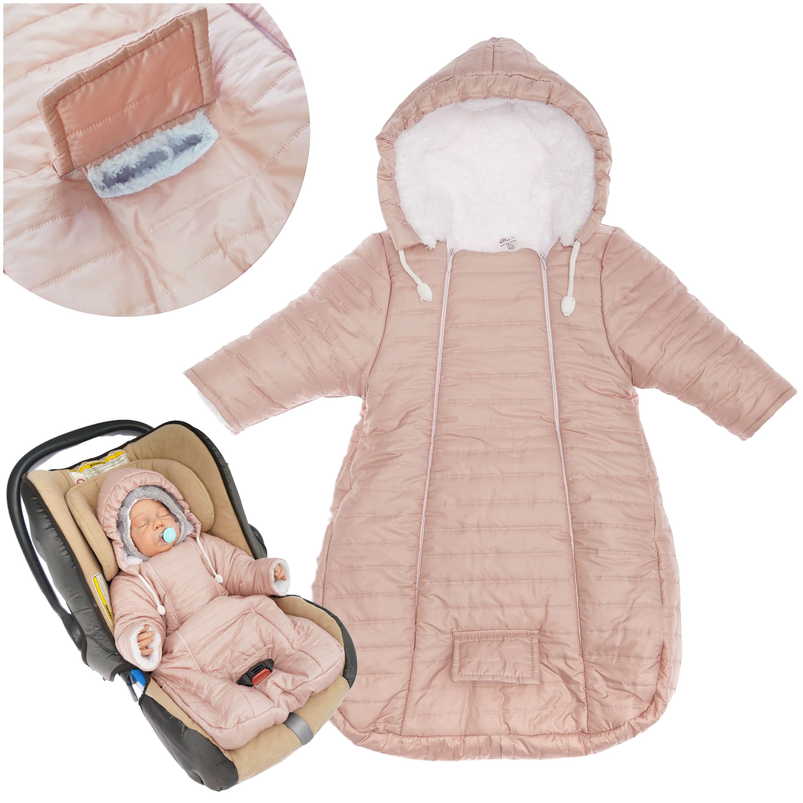 Różowy śpiwór śpiworek ocieplany z rękawami niemowlęcy do fotelika gondoli