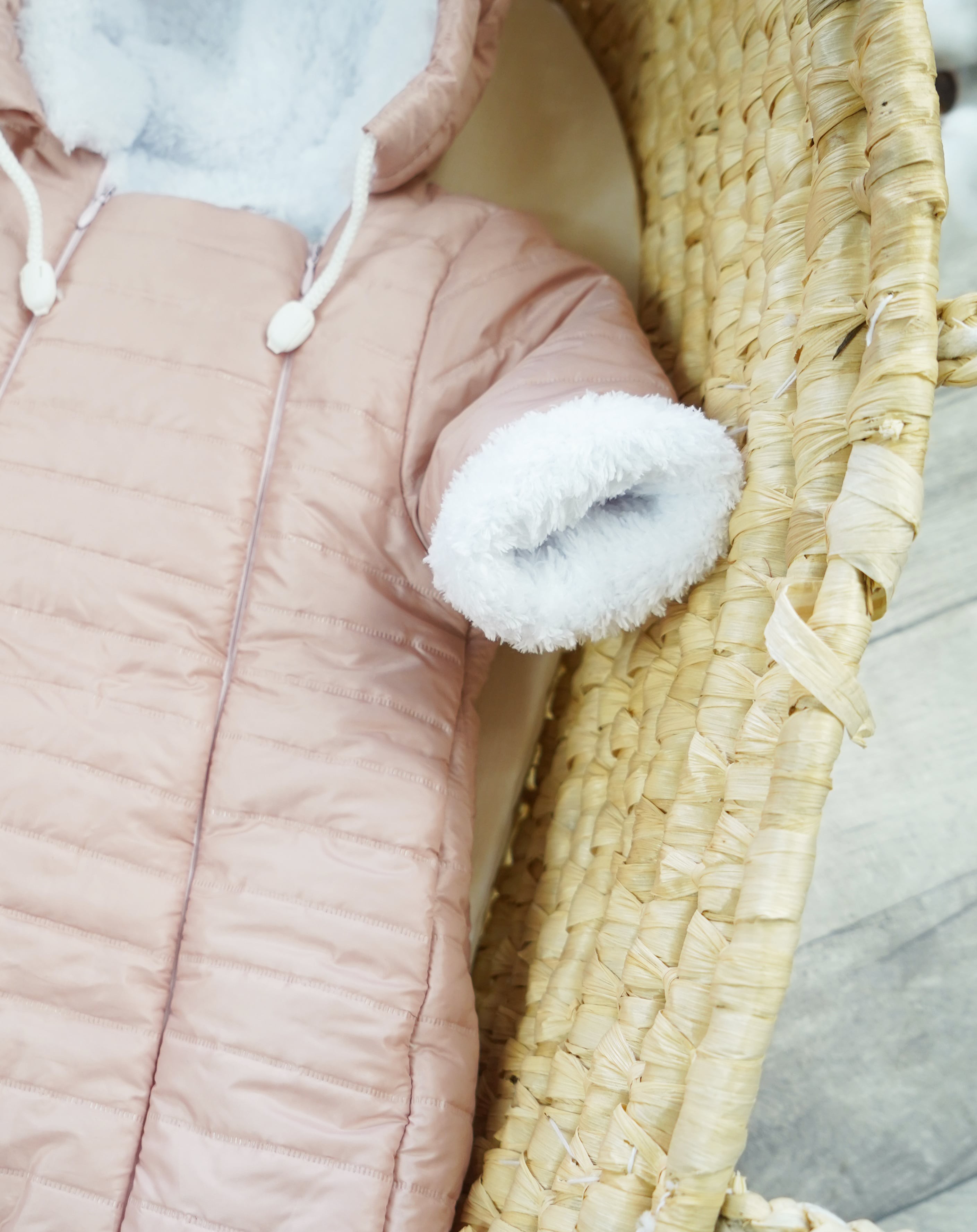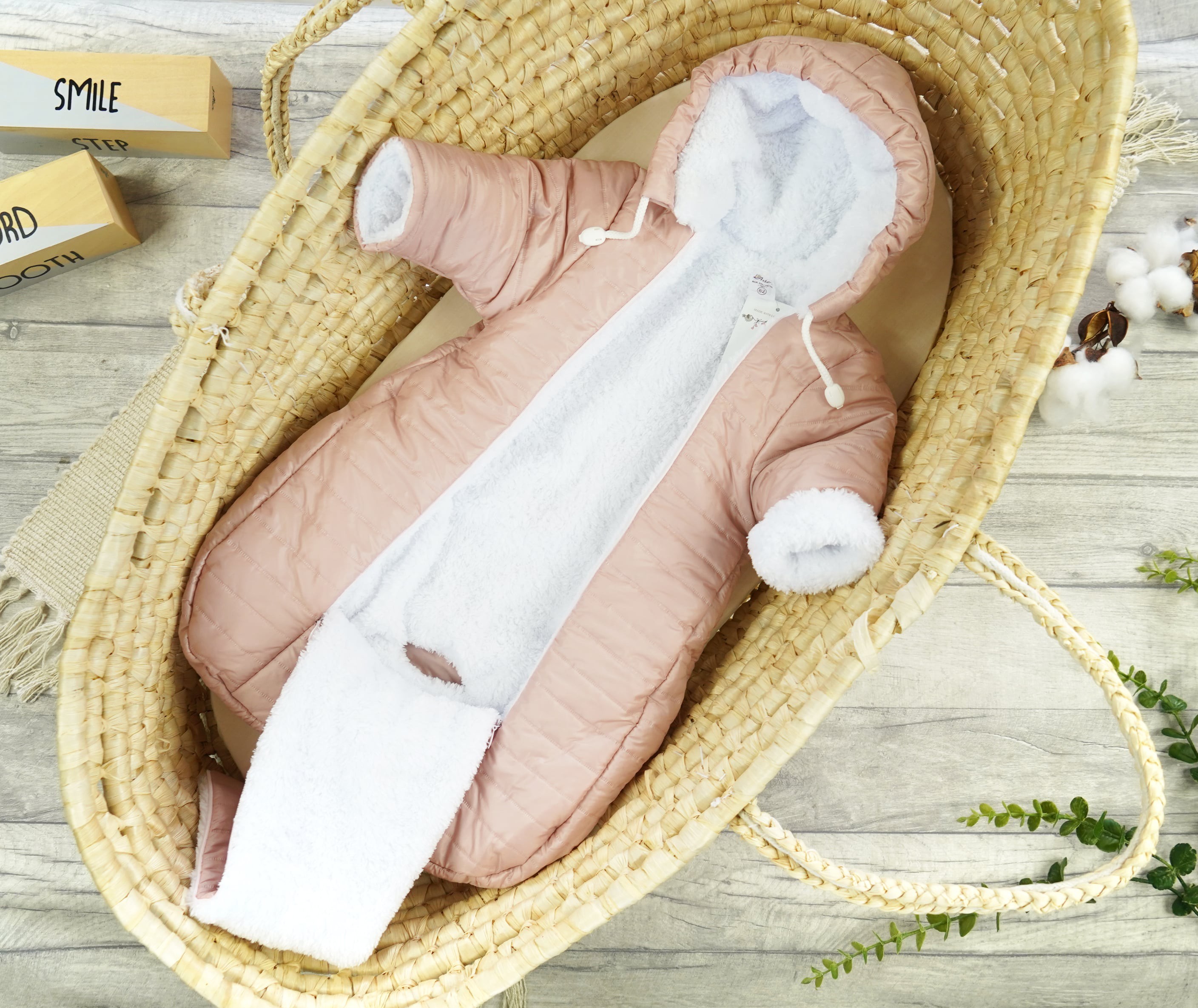 Dopasowany do delikatnej skóry niemowlaka- biała warstwa wewnętrzna łącznie z kapturkiem wykonana jest z miękkiej, misiowej tkaniny.