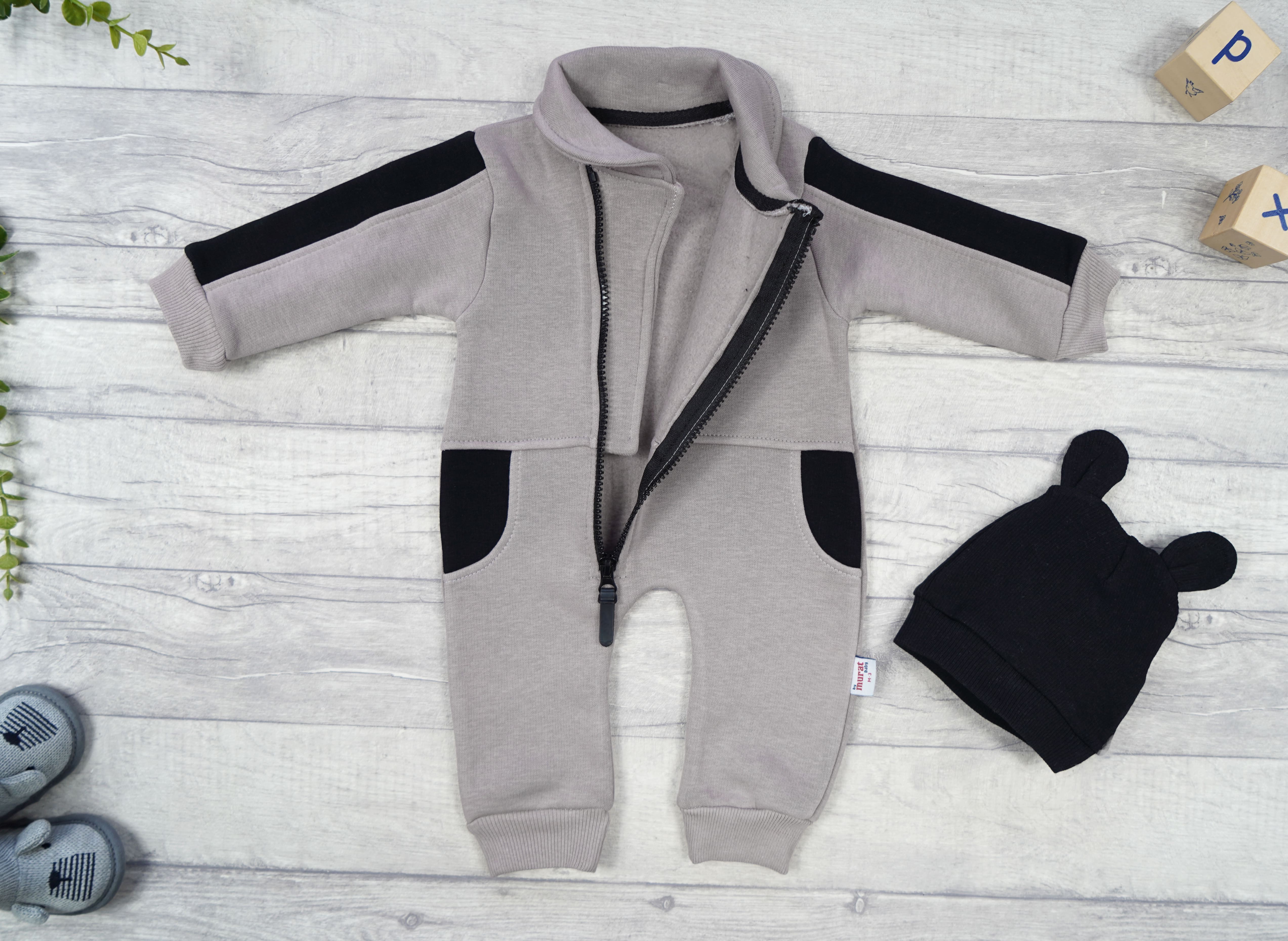 Beżowo- szary kombinezon dla niemowlaka to odpowiednia odzież wierzchnia niemowlęca dla dziewczynki oraz dla chłopaka. Kombinezon niemowlęcy wykonany jest w 100% z bawełny dresowej z wewnętrzną warstwą meszku dającej większy komfort cieplny dziecku. Niezwykle miękki i wygodny w zakładaniu kombinezon jest dopasowany do fotelików samochodowych. Kombinezony dziecięce idealne sprawdzają się w wiosenne i chłodne, letnie dni, może być również ubraniem pod śpiworek lub otulacz jesienią oraz zimą.