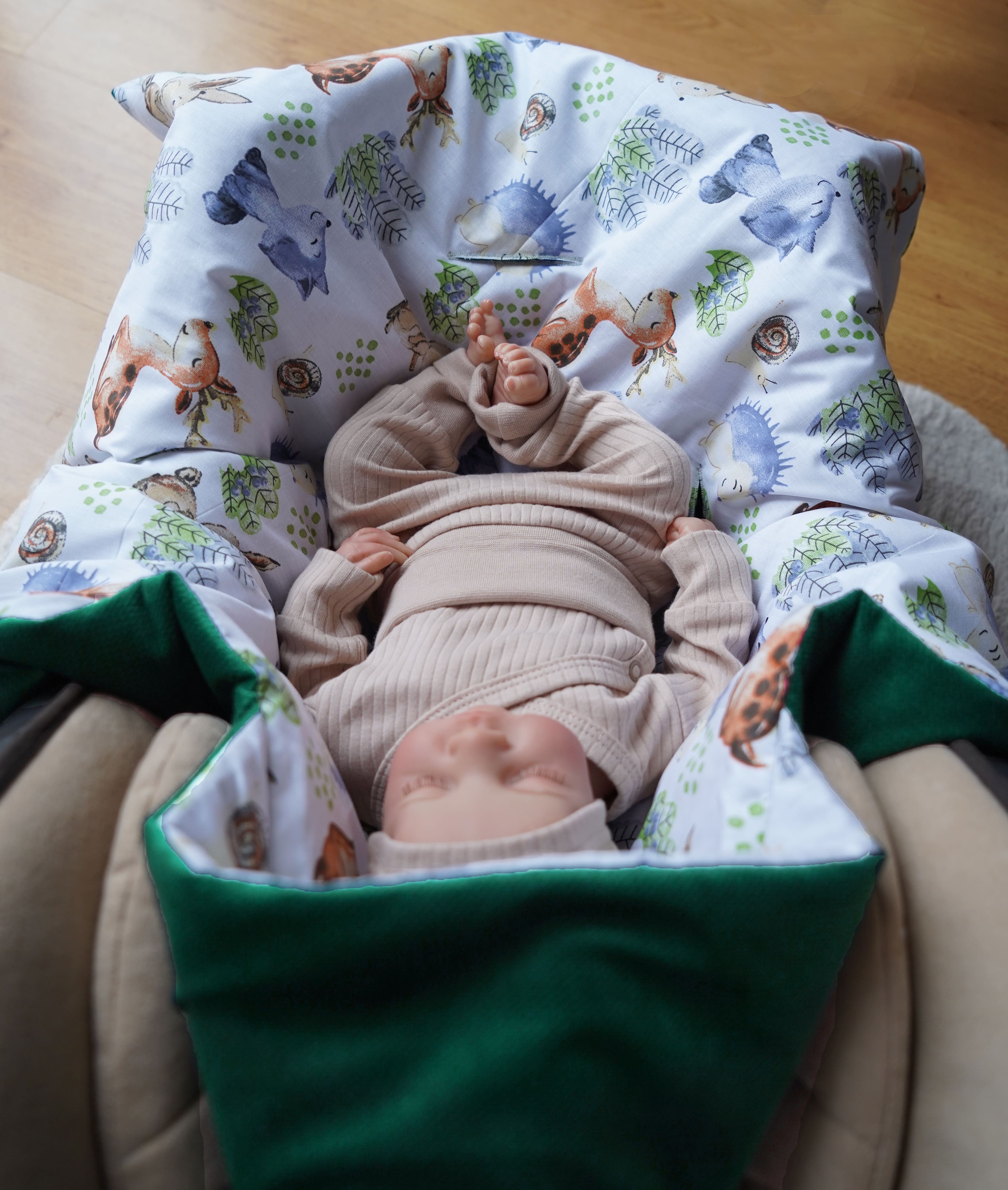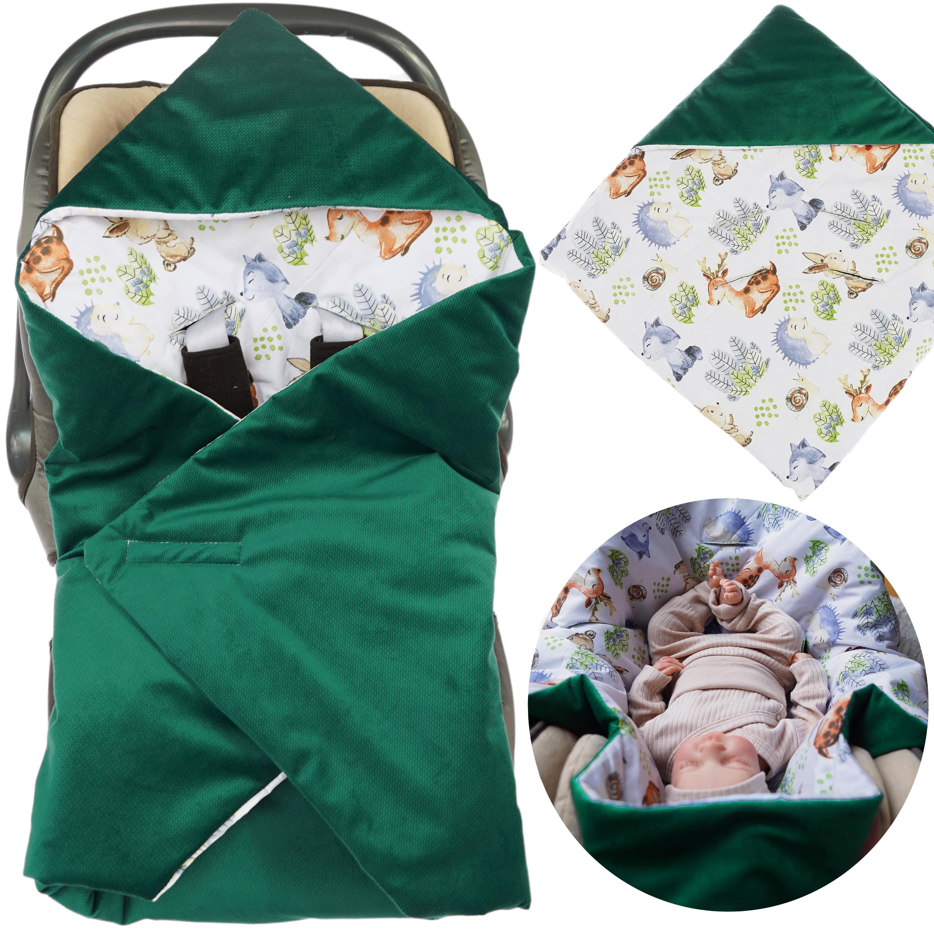 Wielofunkcyjny: świetnie sprawdzi się jako otulacz do fotelika lub kocyk do wózka czy gondoli. Może także służyć jako rożek na pierwsze dni życia maluszka i wyjście ze szpitala a także później, jako mata do raczkowania.