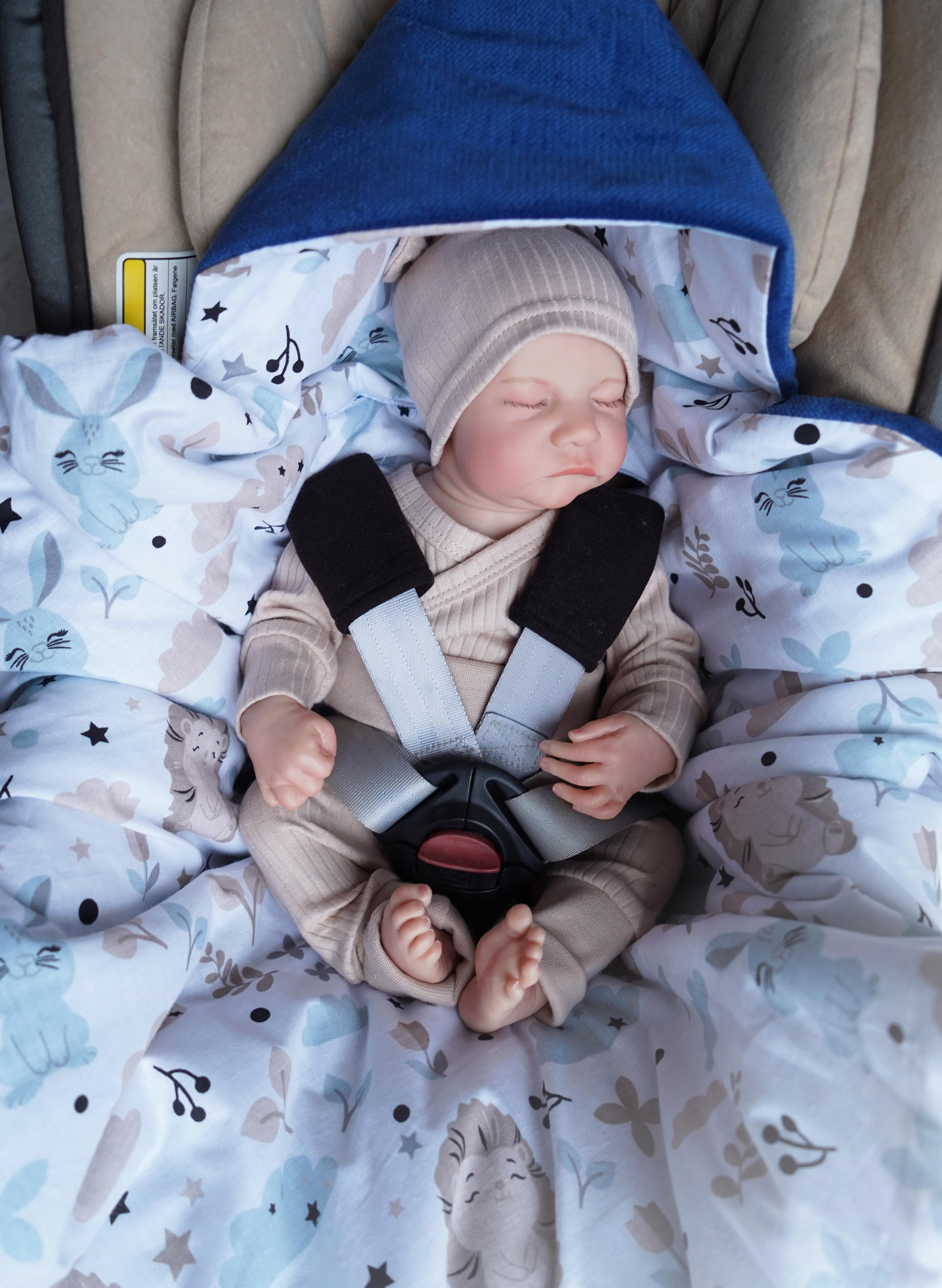 Uniwersalny rozmiar: 7 punktów pasowych sprawia, że otulacz dopasuje się do każdego rodzaju fotelika samochodowego, zapewniając tym samym bezpieczne i bezproblemowe zapięcie maluszka.