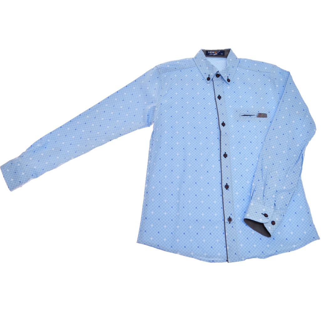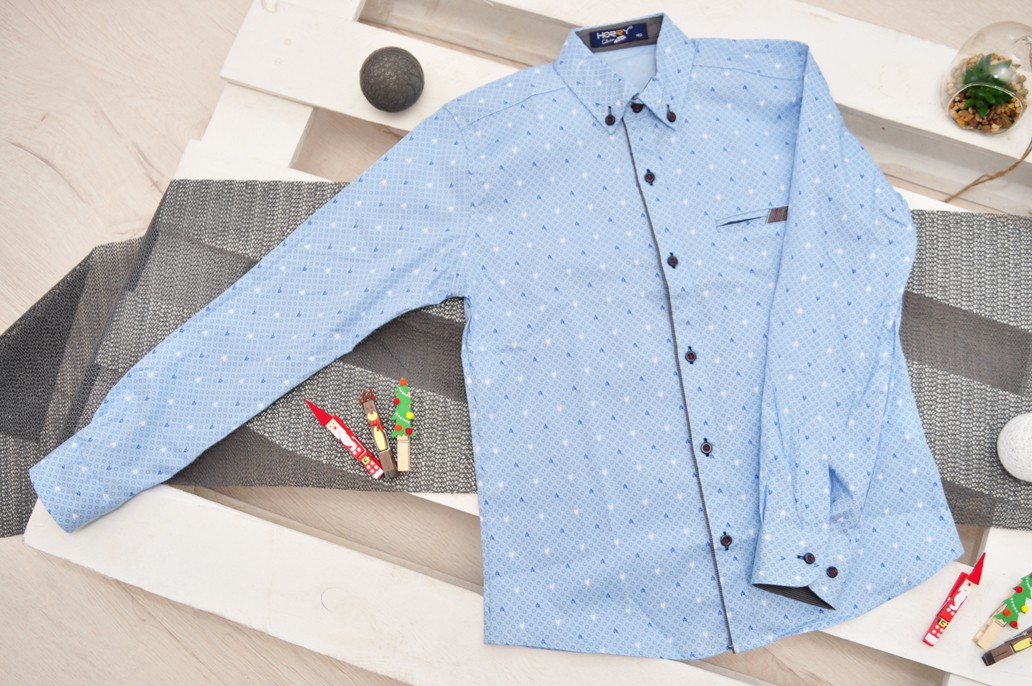 Niebieska koszula chłopięca we wzorki długi rękaw elegancka