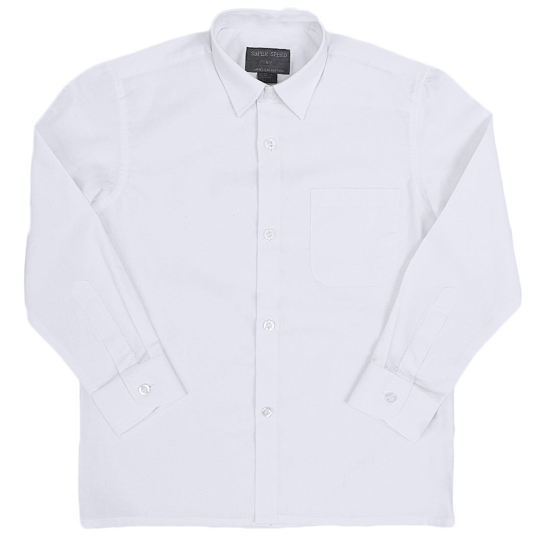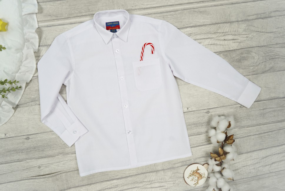 Biała, elegancka koszula dla chłopca z długim rękawem.