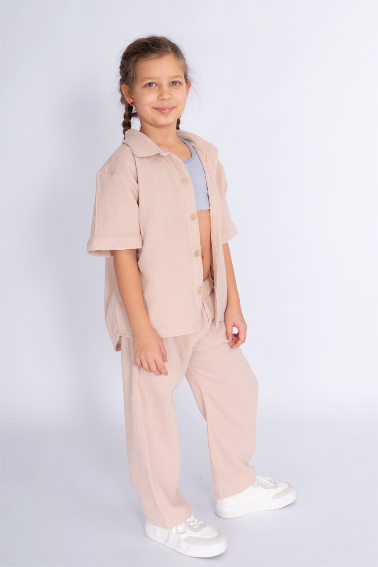 Uniwersalny fason – forma koszuli sprawia, że pasuje do każdej sylwetki, zarówno chłopięcej, jak i dziewczęcej. W zestawieniu z podkoszulkiem lub topem dopełni każdą, dziecięcą, letnią stylizację.