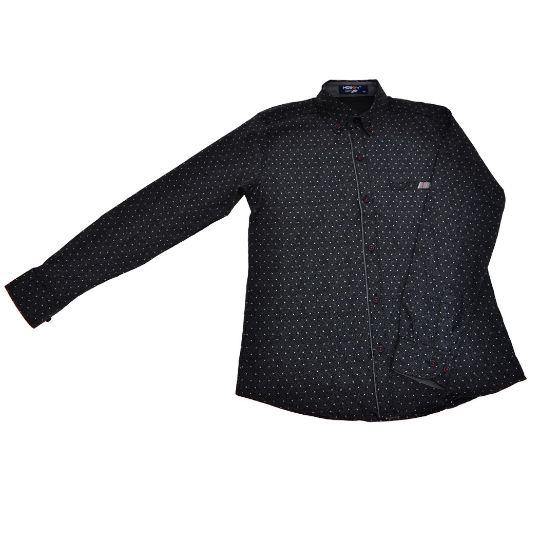 Czarna koszula chłopięca w białe wzorki długi rękaw elegancka