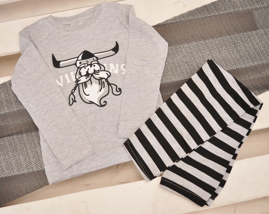 Nadruk wikinga na bluzie dodaje piżamce typowo chłopięcego stylu a wygodny i luźny fason sprawi, że Twoje dziecko będzie miało kolorowe sny. A w chłodniejsze dni i noce na zmarźnięte stópki polecamy bawełniane skarpetki.