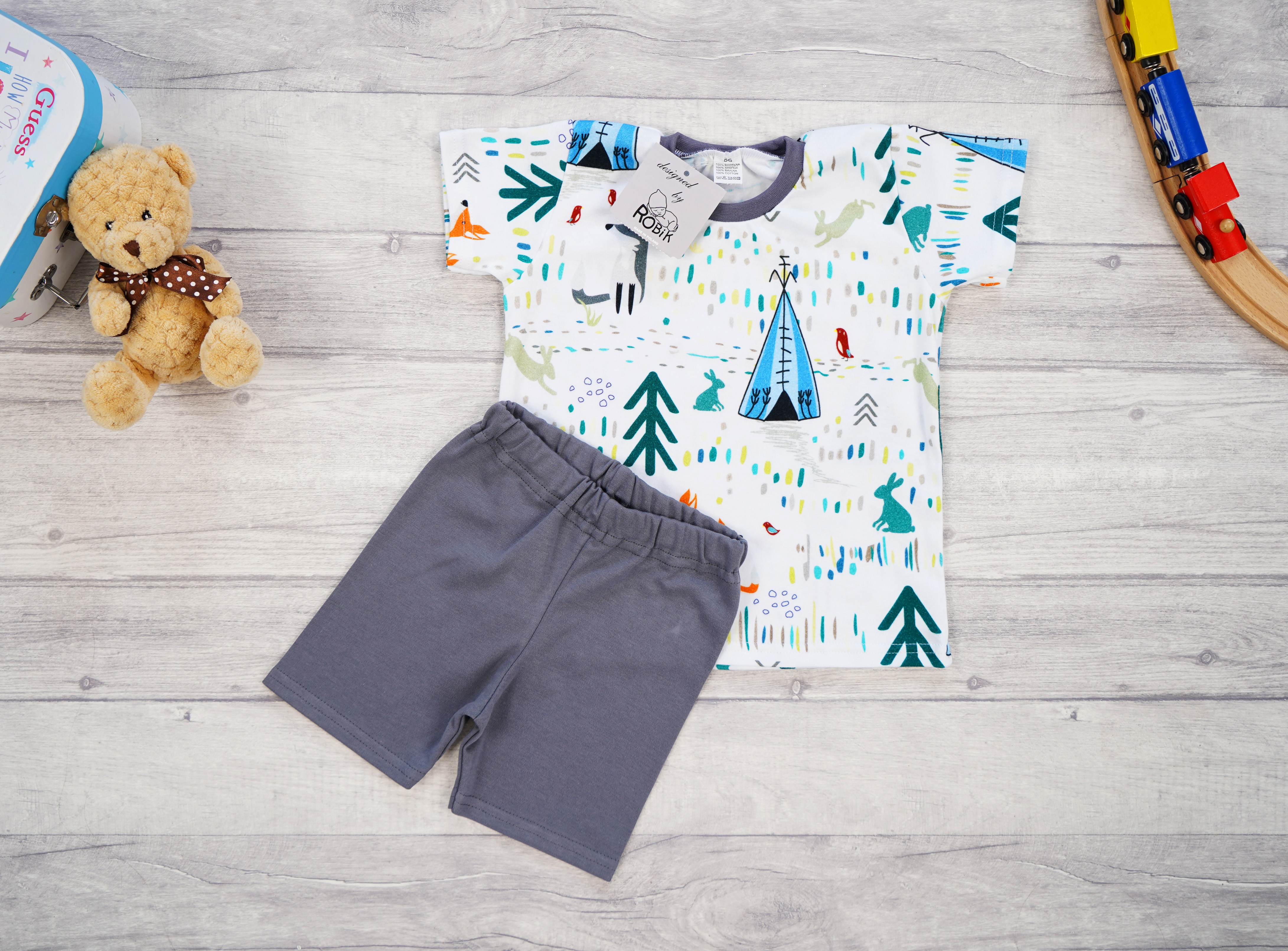 Piżama dziecięca z nadrukiem tipi, krótki rękaw