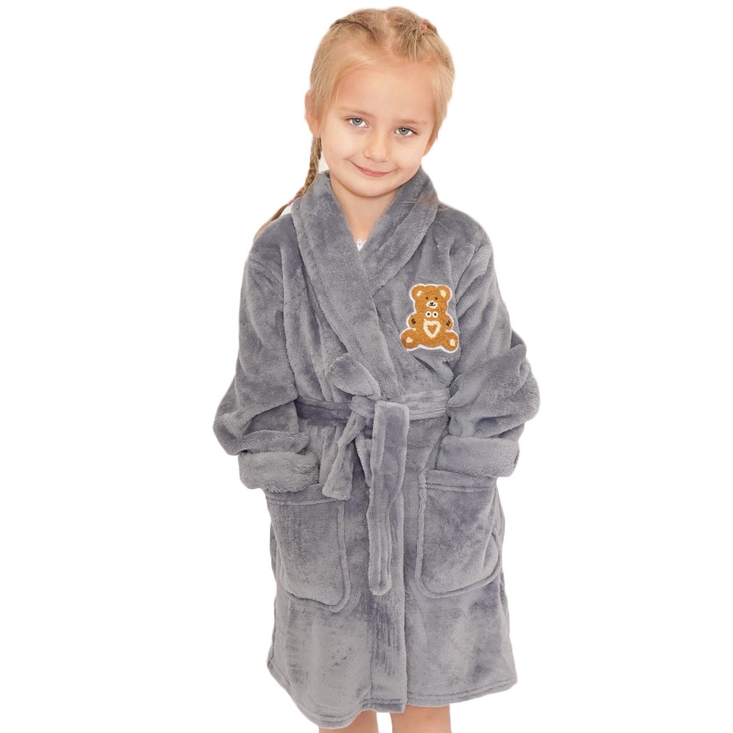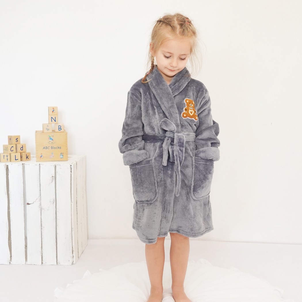 Szary ciepły SZLAFROK dziecięcy z misiem