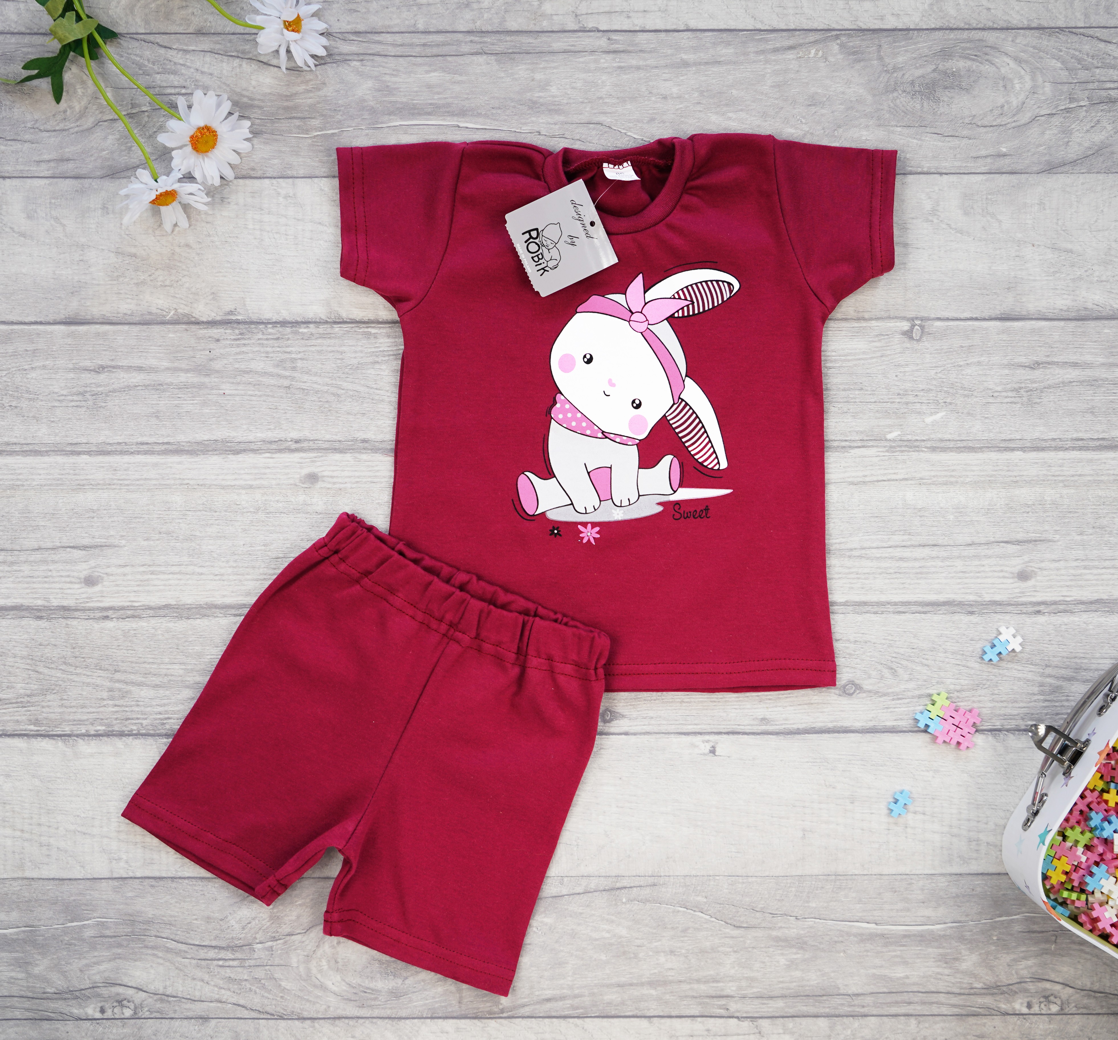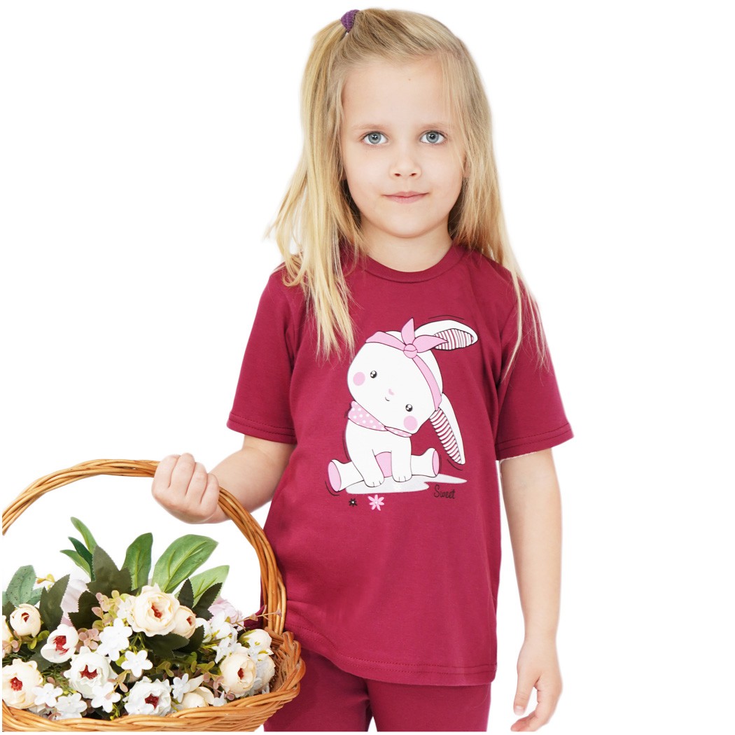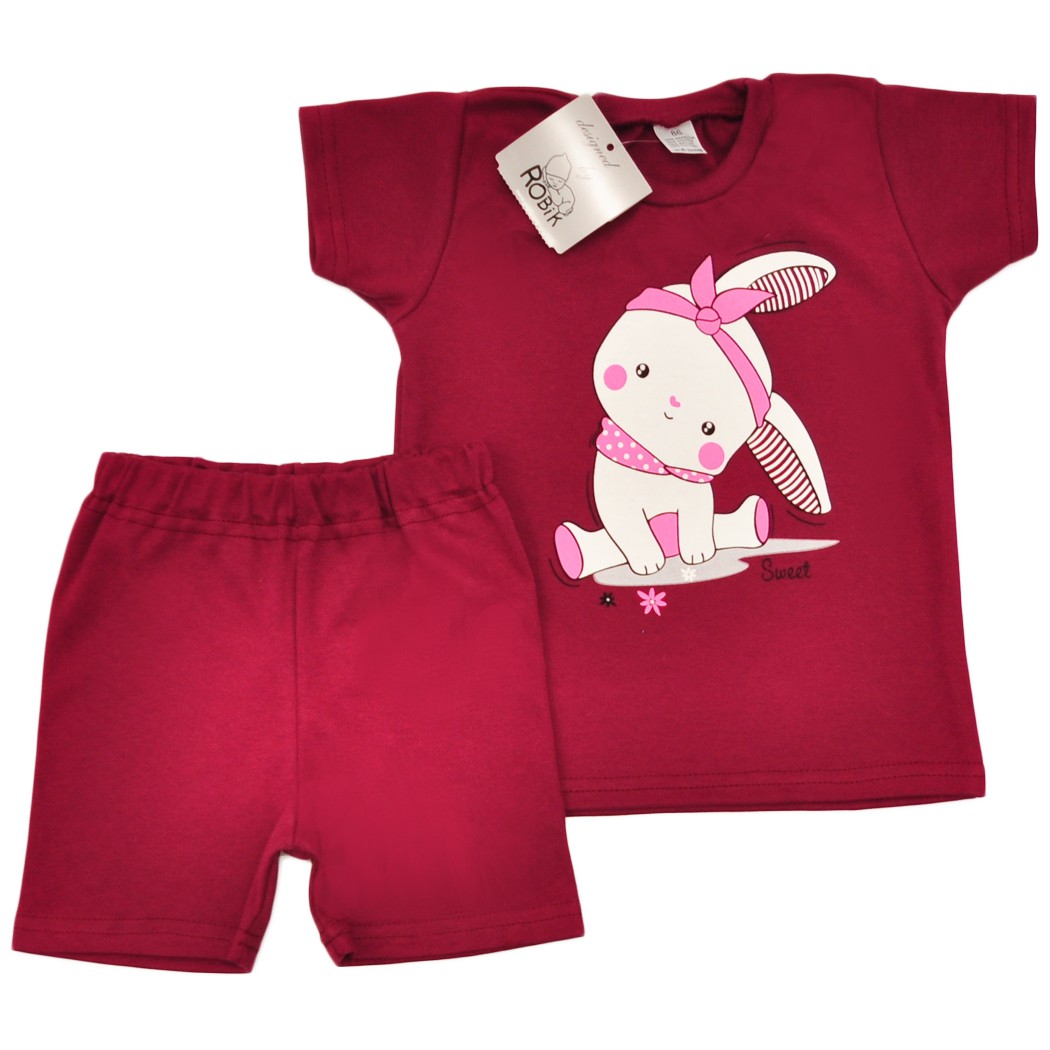 PIŻAMA letnia bordowa SWEET KRÓLIK 679 krótki rękaw