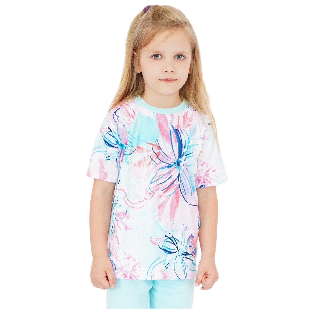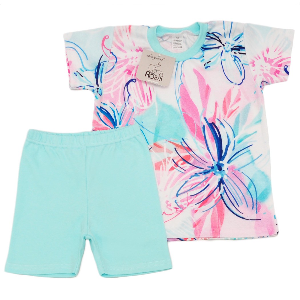 Piżama dziewczęca w kolorowe kwiaty, krótki rękaw