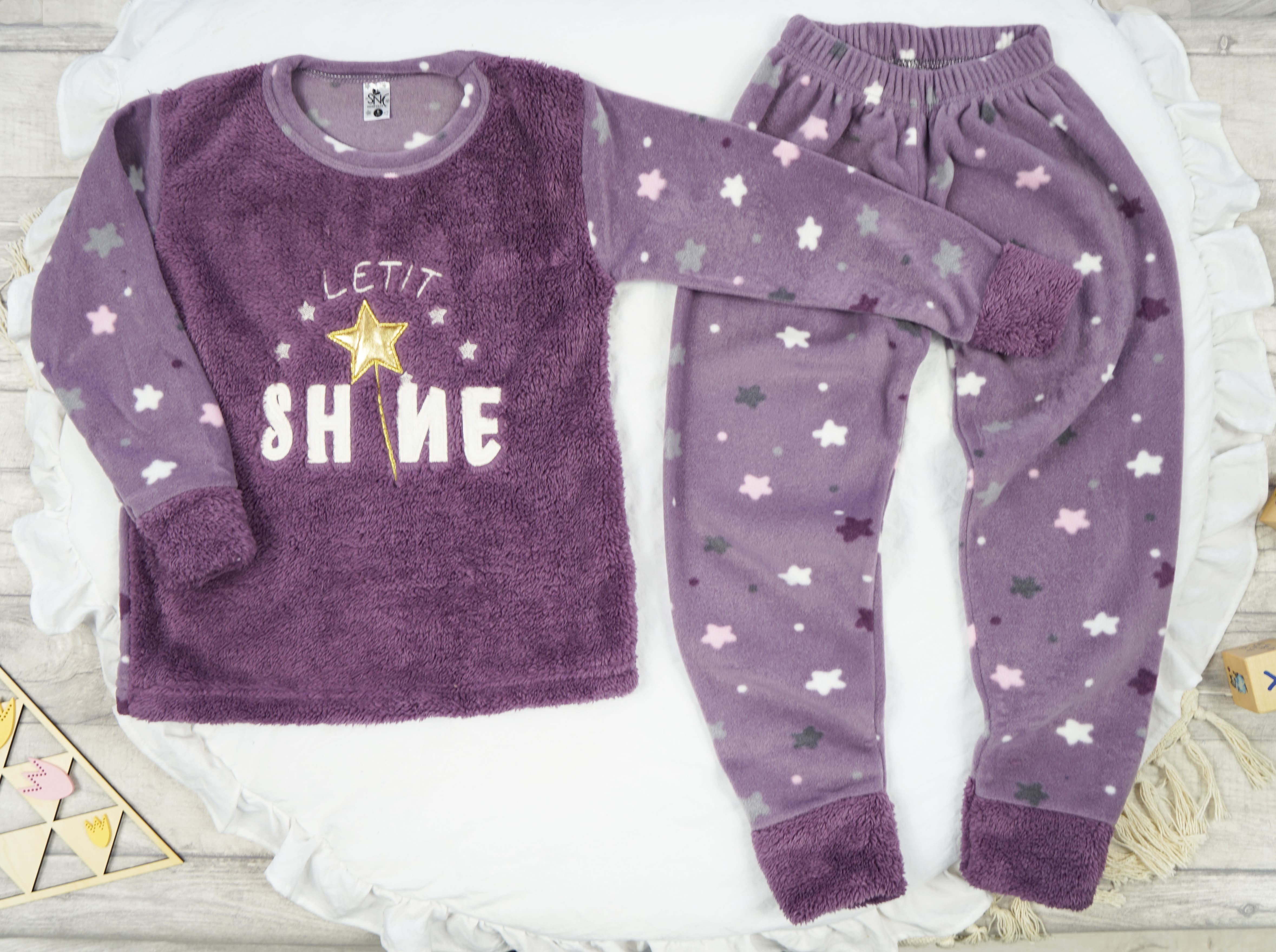 Fioletowa PIŻAMA polarowa ciepła w gwiazdki SHINE święta