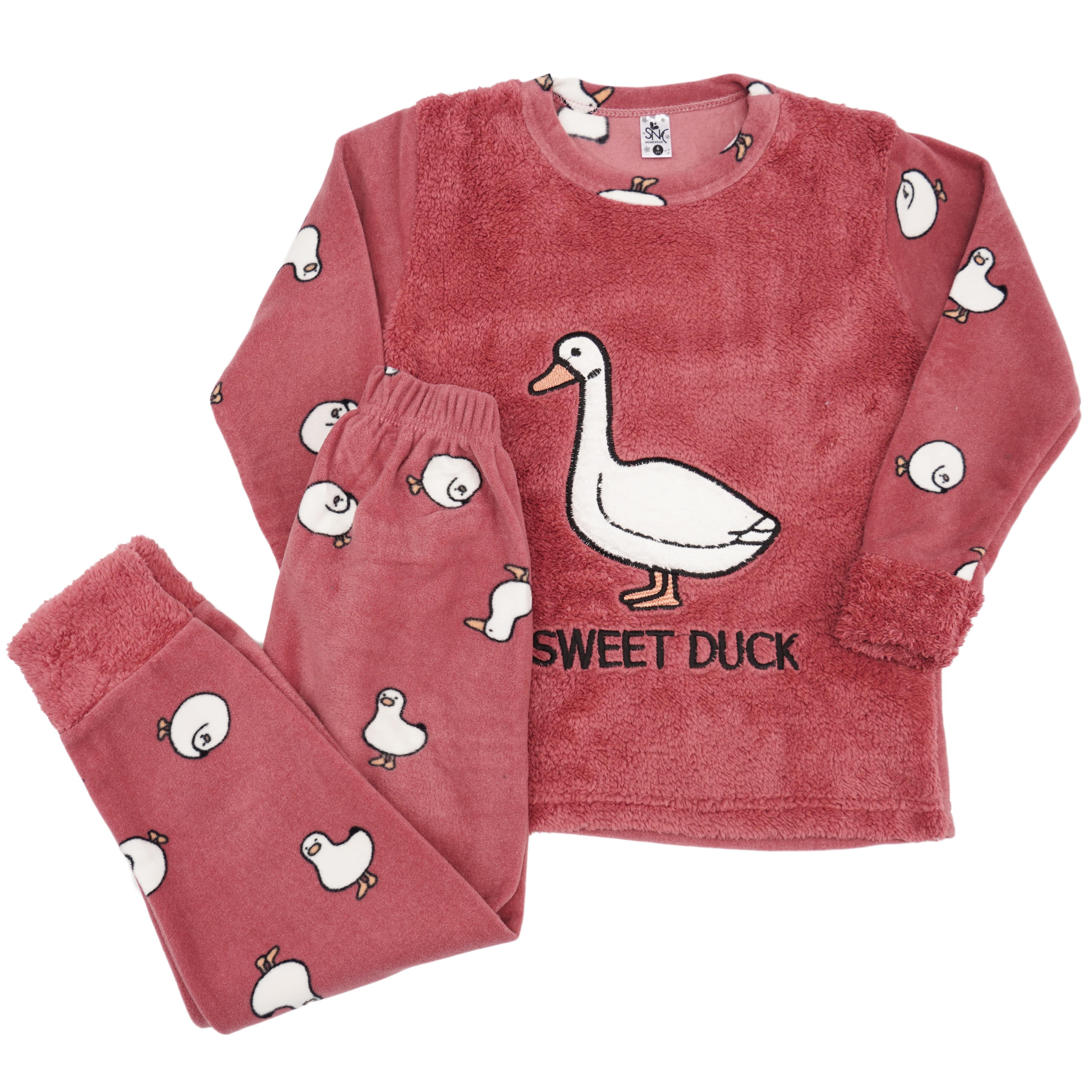 Ciemny róż PIŻAMA polarowa ciepła z kaczką długi rękaw