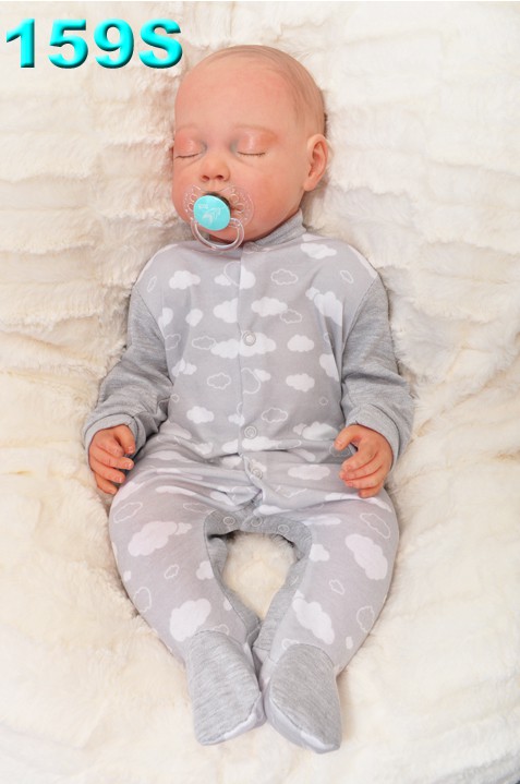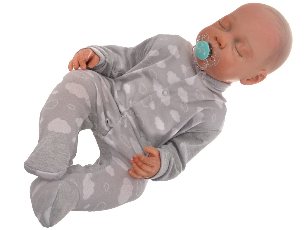 Pajac bawełniany niemowlęcy w kolorze szarym w białe chmurki.