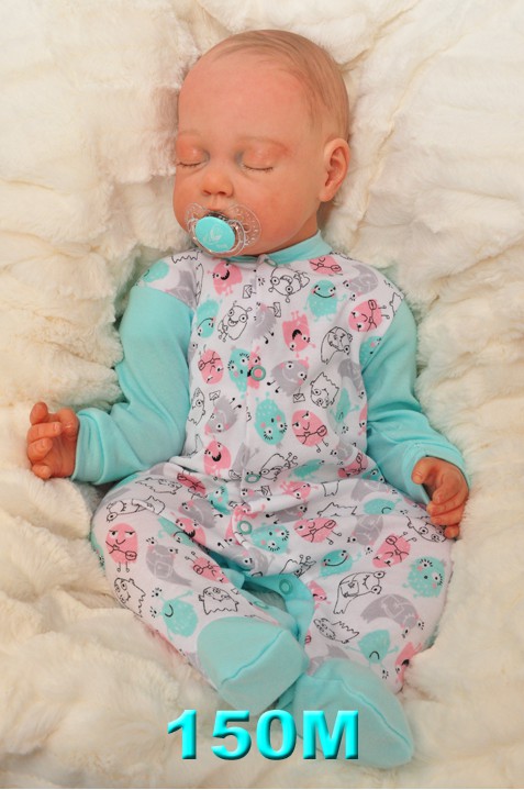 Pajac pajacyk bawełniany miętowy w stworki wzór 150M